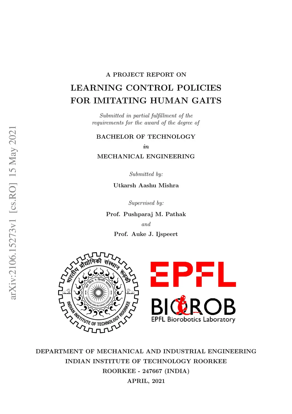 The work presented in this report introduces a framework aimed towards learning to imitate human gaits. Humans exhibit movements like walking, running, and jumping in the most efficient manner, which served as the source of motivation for this project. Skeletal and Musculoskeletal human models were considered for motions in the sagittal plane, and results from both were compared exhaustively. While skeletal models are driven with motor actuation, musculoskeletal models perform through muscle-tendon actuation. Model-free reinforcement learning algorithms were used to optimize inverse dynamics control actions to satisfy the objective of imitating a reference motion along with secondary objectives of minimizing effort in terms of power spent by motors and metabolic energy consumed by the muscles. On the one hand, the control actions for the motor actuated model is the target joint angles converted into joint torques through a Proportional-Differential controller. While on the other hand, the control actions for the muscle-tendon actuated model is the muscle excitations converted implicitly to muscle activations and then to muscle forces which apply moments on joints. Muscle-tendon actuated models were found to have superiority over motor actuation as they are inherently smooth due to muscle activation dynamics and don't need any external regularizers. Finally, a strategy that was used to obtain an optimal configuration of the significant decision variables in the framework was discussed. All the results and analysis are presented in an illustrative, qualitative, and quantitative manner. Supporting video links are provided in the Appendix.
