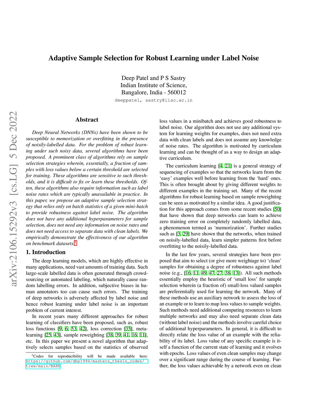 Adaptive Sample Selection for Robust Learning under Label Noise
