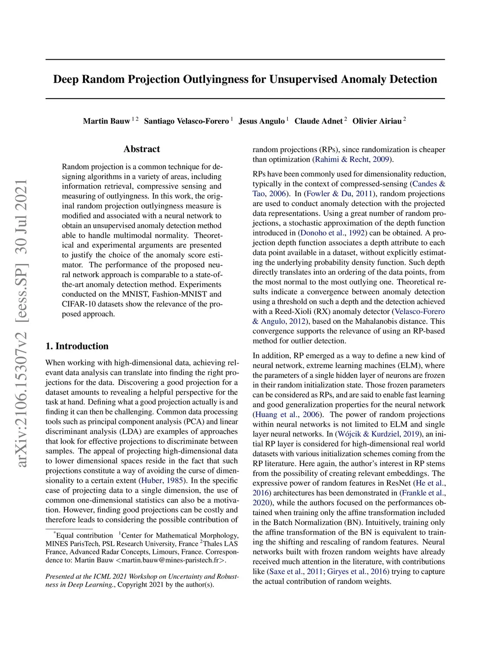 Deep Random Projection Outlyingness for Unsupervised Anomaly Detection