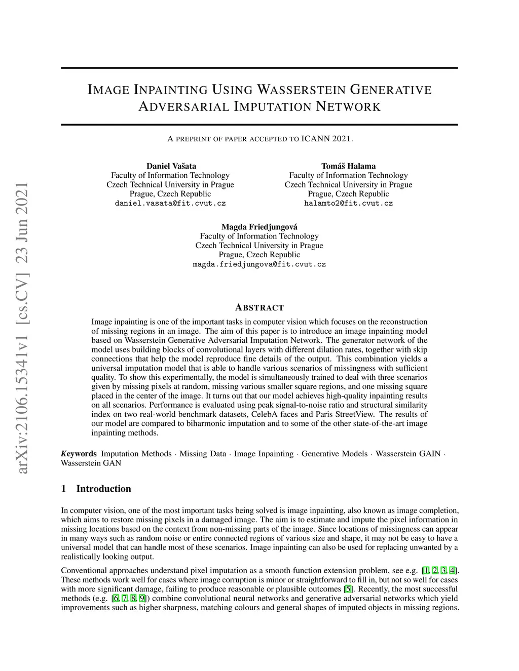 Image Inpainting Using Wasserstein Generative Adversarial Imputation