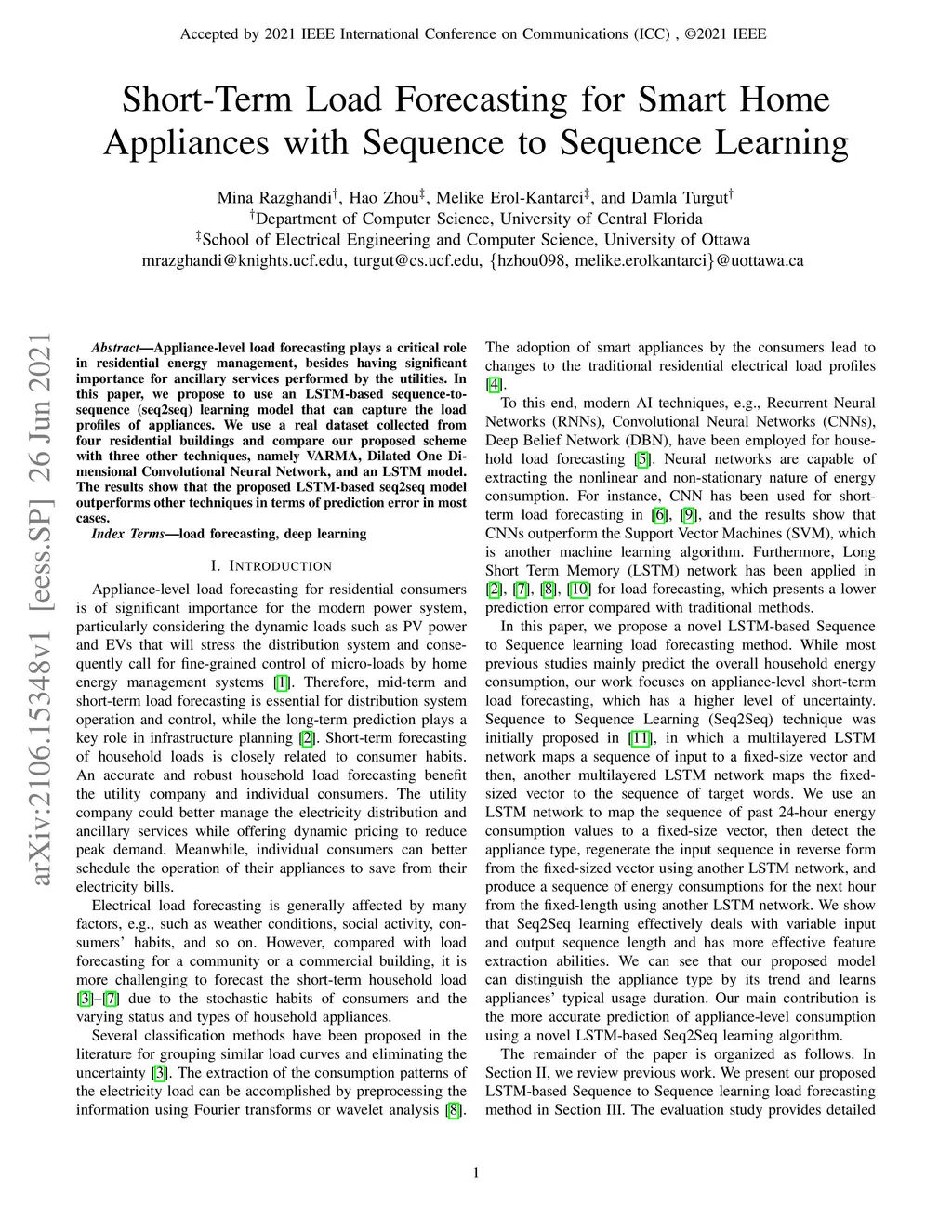 Short-Term Load Forecasting for Smart HomeAppliances with Sequence to