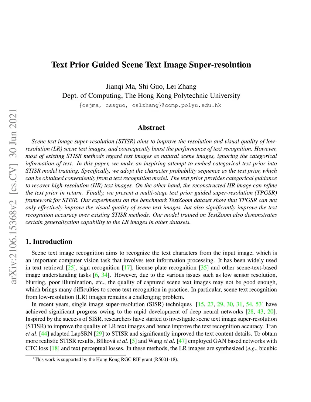 Text Prior Guided Scene Text Image Super-resolution
