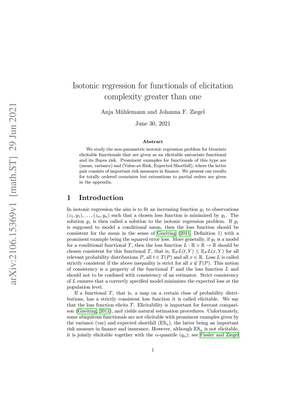 We study the non-parametric isotonic regression problem for bivariate elicitable functionals that are given as an elicitable univariate functional and its Bayes risk. Prominent examples for functionals of this type are (mean, variance) and (Value-at-Risk, Expected Shortfall), where the latter pair consists of important risk measures in finance. We present our results for totally ordered covariates but extenstions to partial orders are given in the appendix.