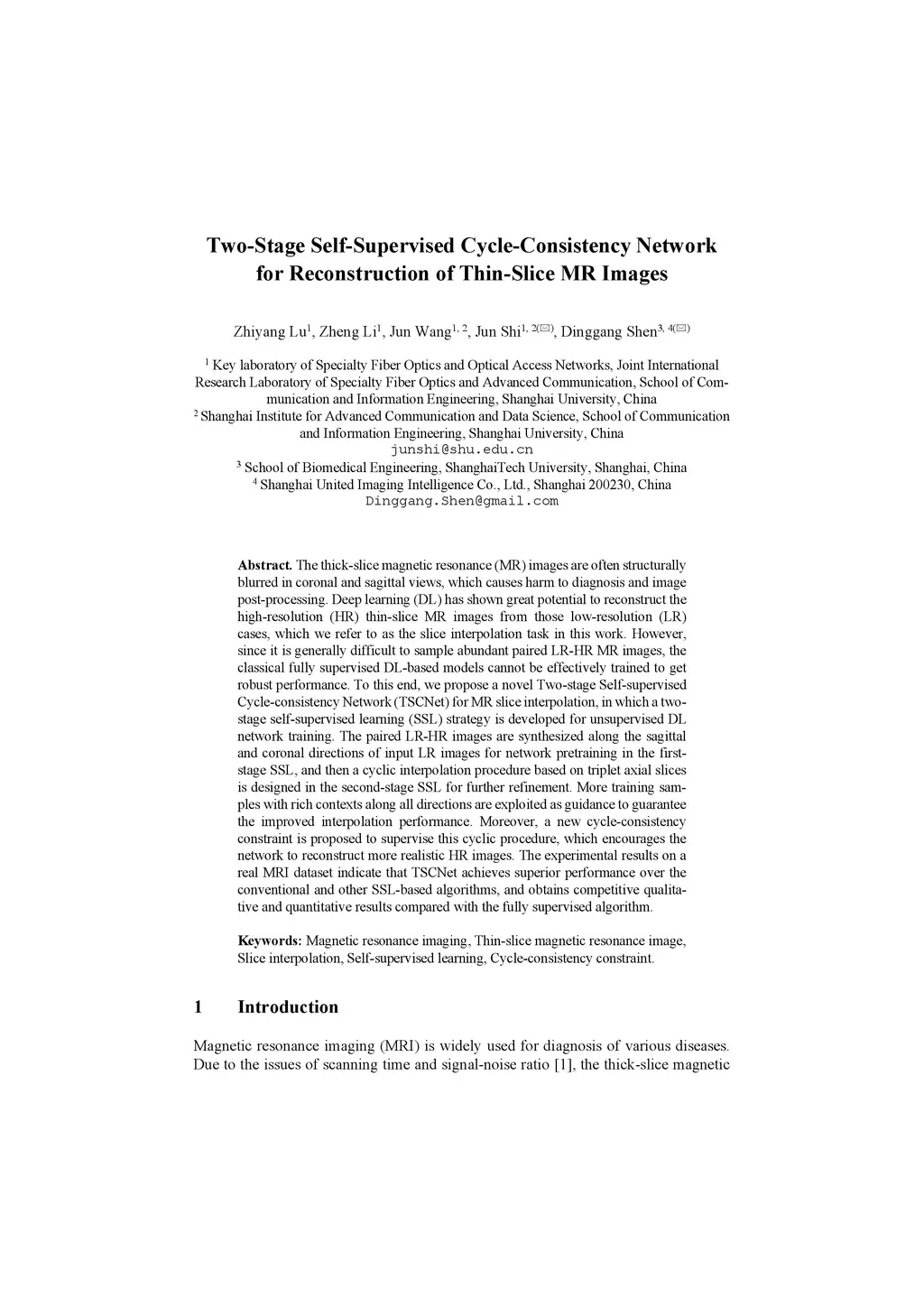 Two-Stage Self-Supervised Cycle-Consistency Network for Reconstruction