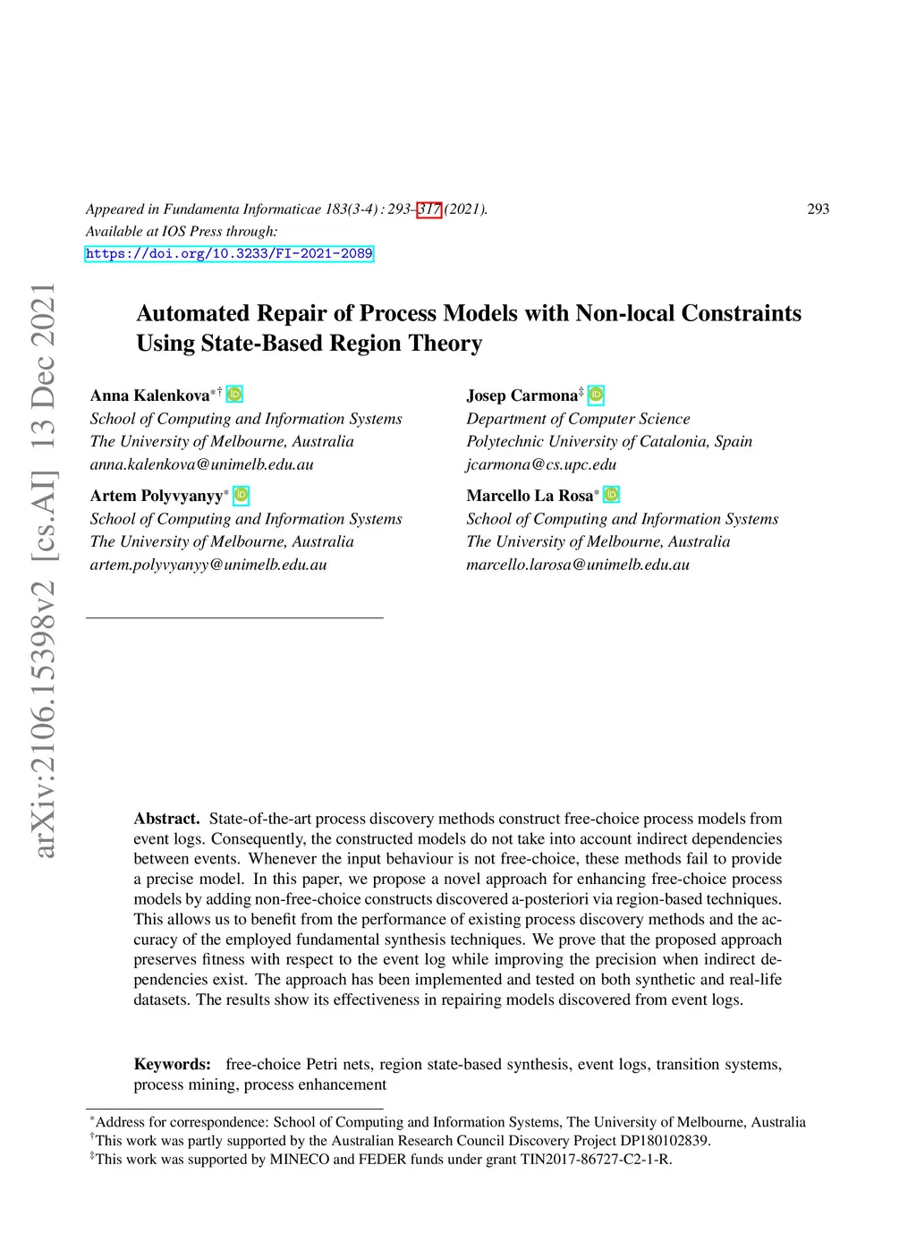 State-of-the-art process discovery methods construct free-choice process models from event logs. Consequently, the constructed models do not take into account indirect dependencies between events. Whenever the input behaviour is not free-choice, these methods fail to provide a precise model. In this paper, we propose a novel approach for enhancing free-choice process models by adding non-free-choice constructs discovered a-posteriori via region-based techniques. This allows us to benefit from the performance of existing process discovery methods and the accuracy of the employed fundamental synthesis techniques. We prove that the proposed approach preserves fitness with respect to the event log while improving the precision when indirect dependencies exist. The approach has been implemented and tested on both synthetic and real-life datasets. The results show its effectiveness in repairing models discovered from event logs.