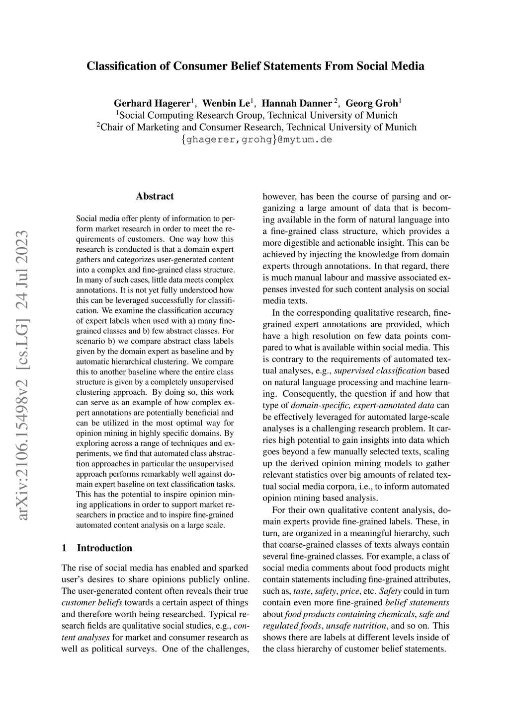 Classification of Consumer Belief Statements From Social Media