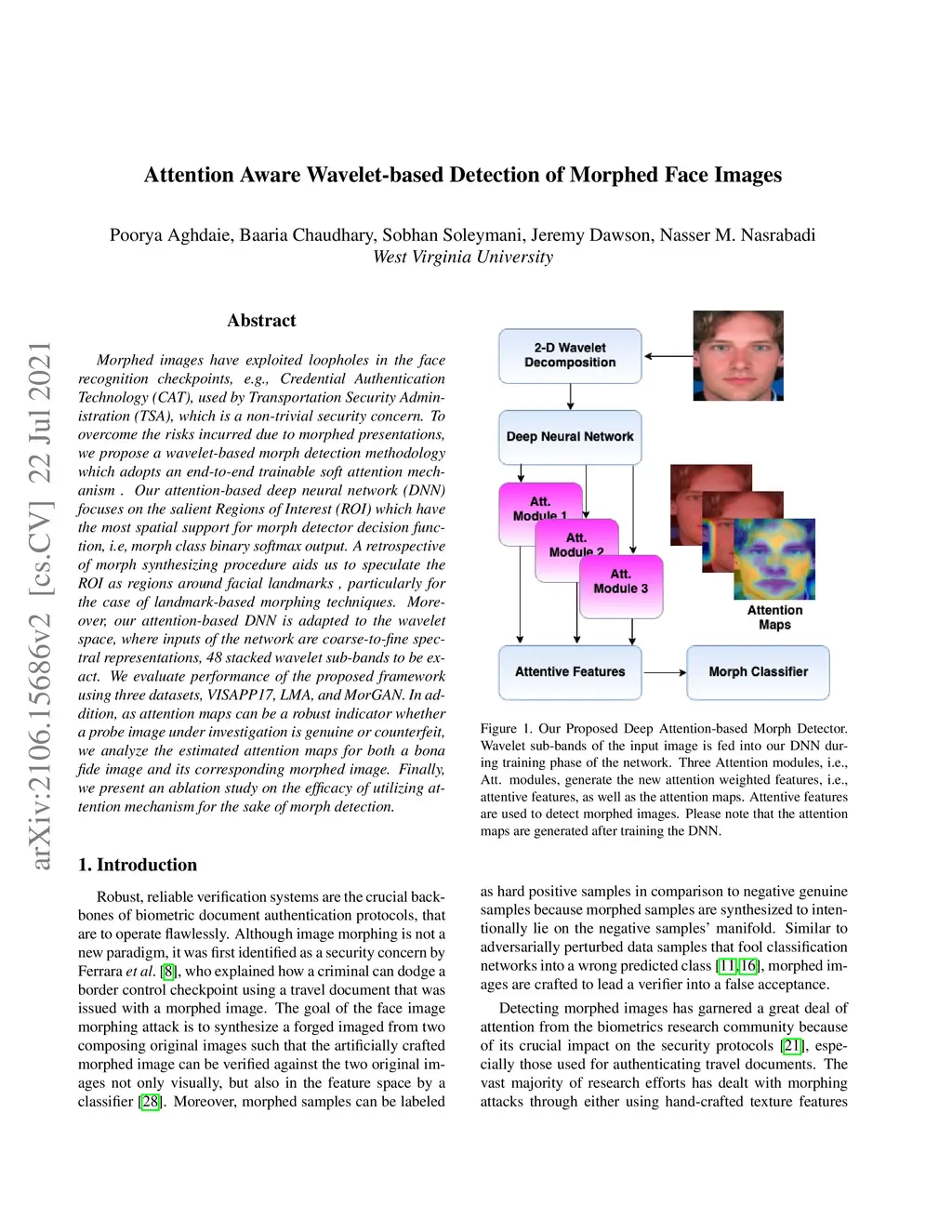 Attention Aware Wavelet-based Detection of Morphed Face Images