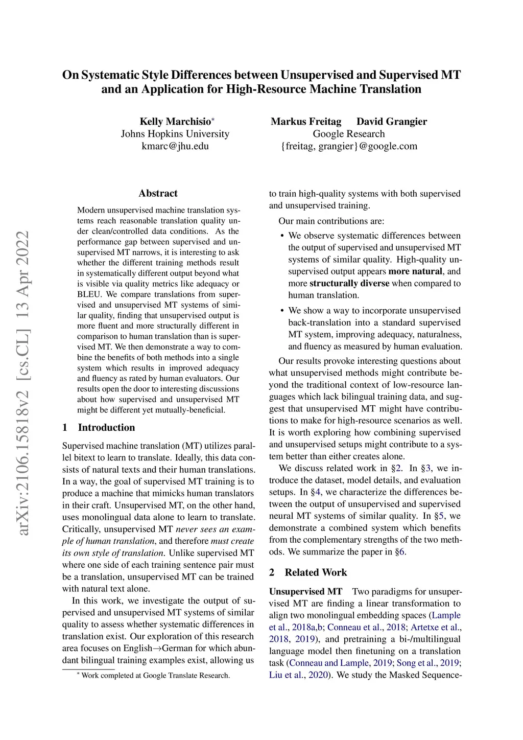 On Systematic Style Differences between Unsupervised and Supervised MT