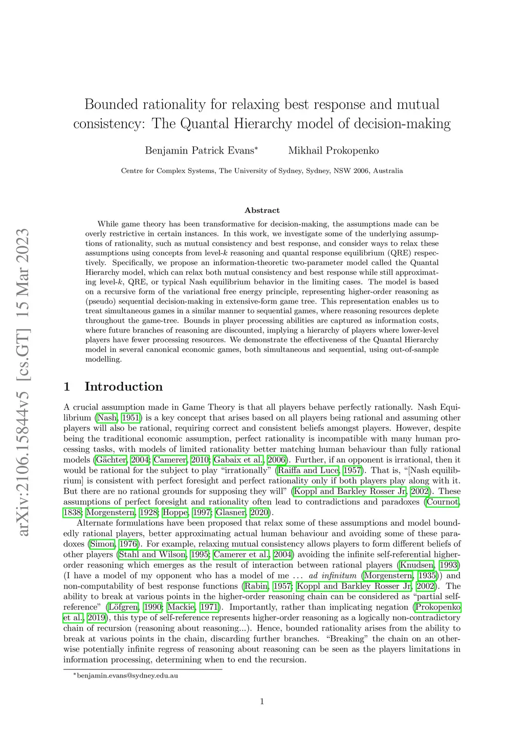 While game theory has been transformative for decision-making, the assumptions made can be overly restrictive in certain instances. In this work, we investigate some of the underlying assumptions of rationality, such as mutual consistency and best response, and consider ways to relax these assumptions using concepts from level- reasoning and quantal response equilibrium (QRE) respectively. Specifically, we propose an information-theoretic two-parameter model called the Quantal Hierarchy model, which can relax both mutual consistency and best response while still approximating level-, QRE, or typical Nash equilibrium behaviour in the limiting cases. The model is based on a recursive form of the variational free energy principle, representing higher-order reasoning as (pseudo) sequential decision-making in extensive-form game tree. This representation enables us to treat simultaneous games in a similar manner to sequential games, where reasoning resources deplete throughout the game-tree. Bounds in player processing abilities are captured as information costs, where future branches of reasoning are discounted, implying a hierarchy of players where lower-level players have fewer processing resources. We demonstrate the effectiveness of the Quantal Hierarchy model in several canonical economic games, {both simultaneous and sequential}, using out-of-sample modelling.