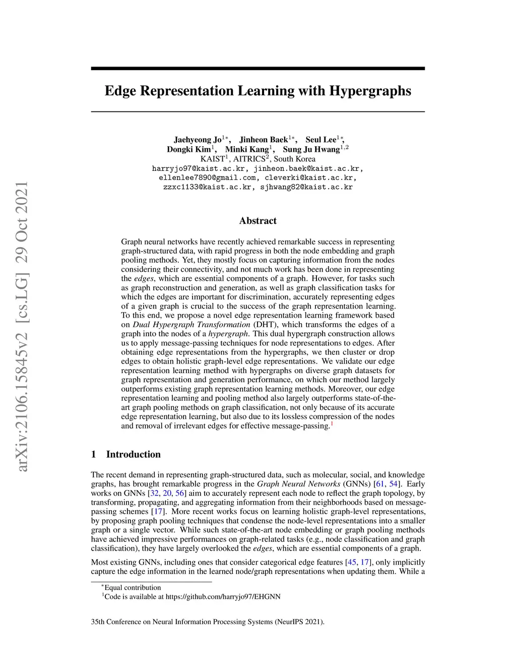 Edge Representation Learning with Hypergraphs