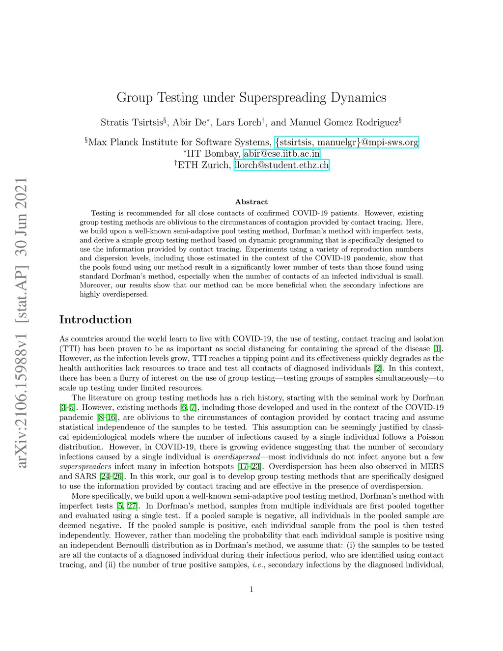 Group Testing under Superspreading Dynamics