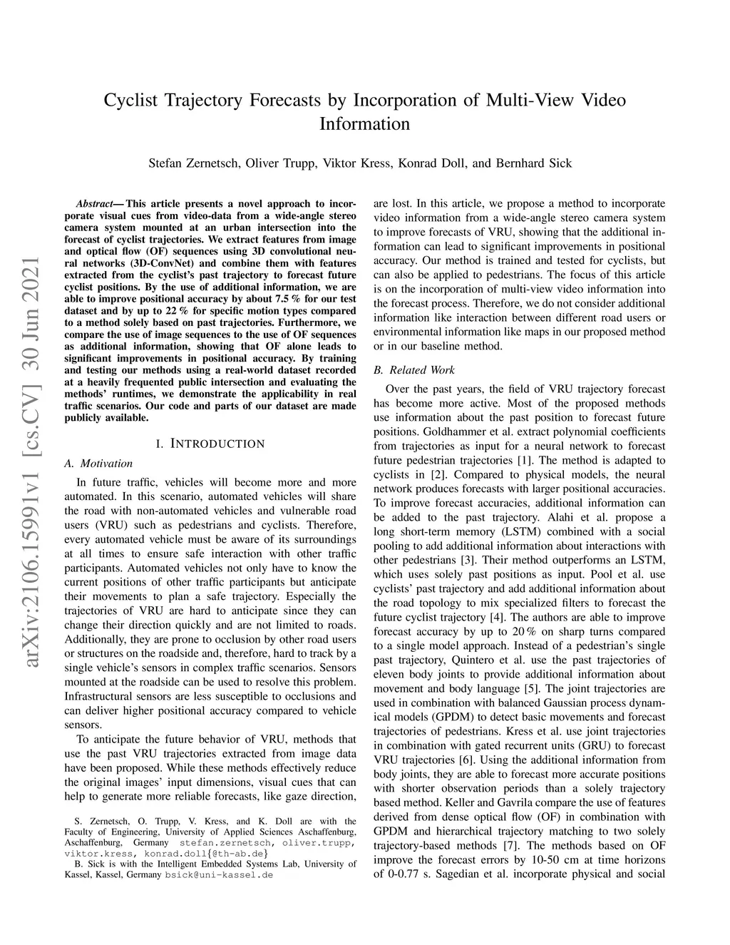 Cyclist Trajectory Forecasts by Incorporation of Multi-View Video