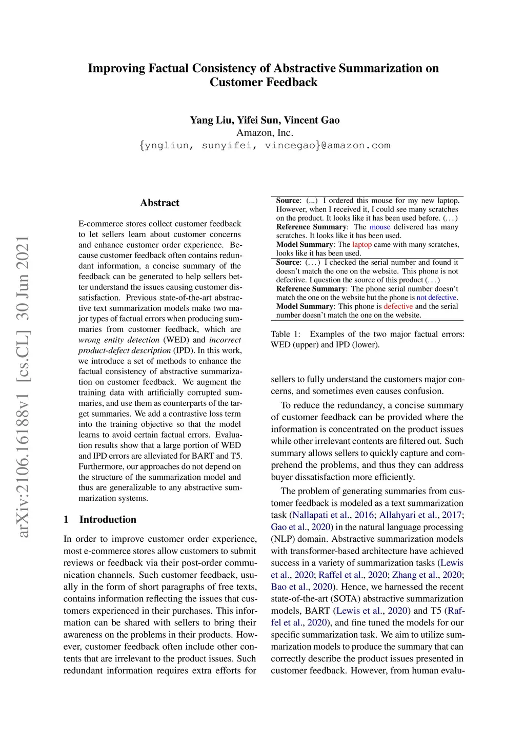 Improving Factual Consistency of Abstractive Summarization on Customer