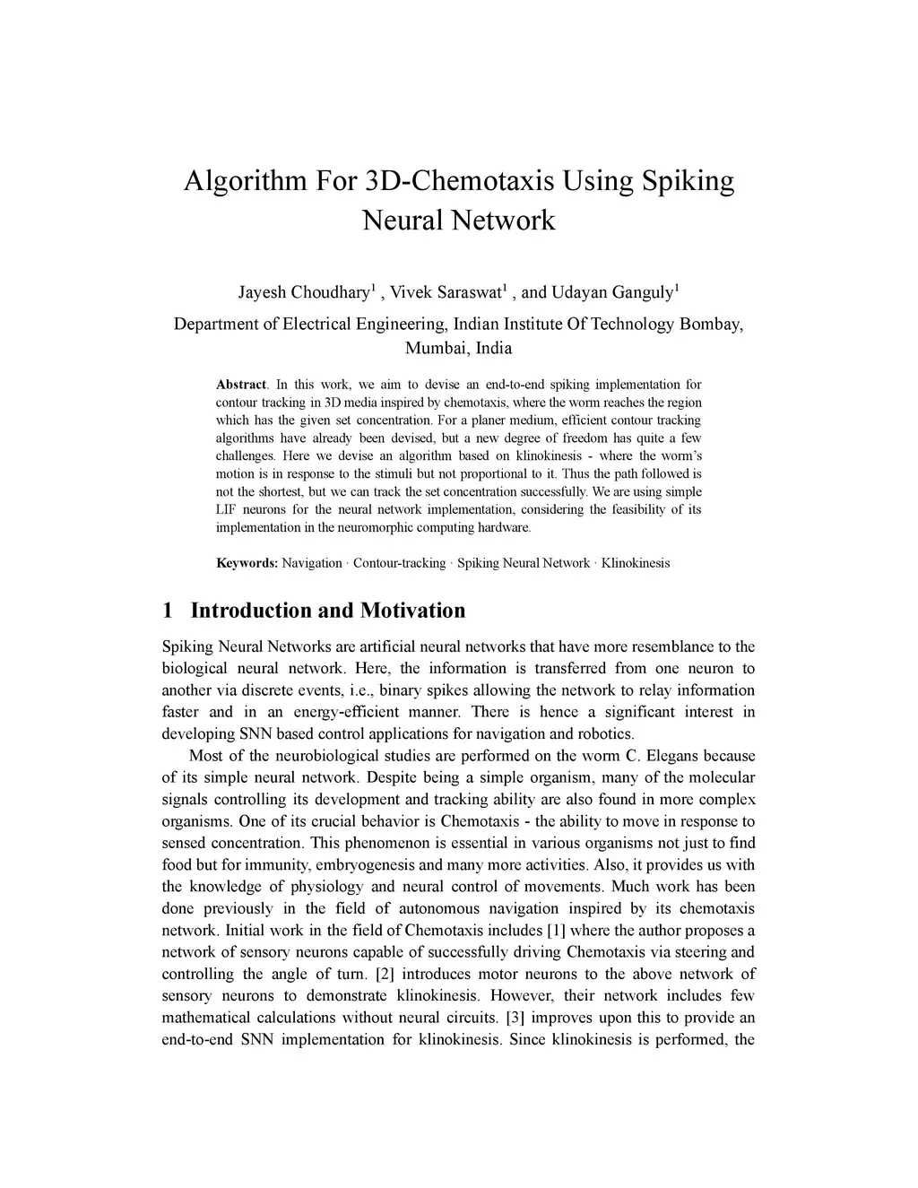 Algorithm For 3D-Chemotaxis Using Spiking Neural Network