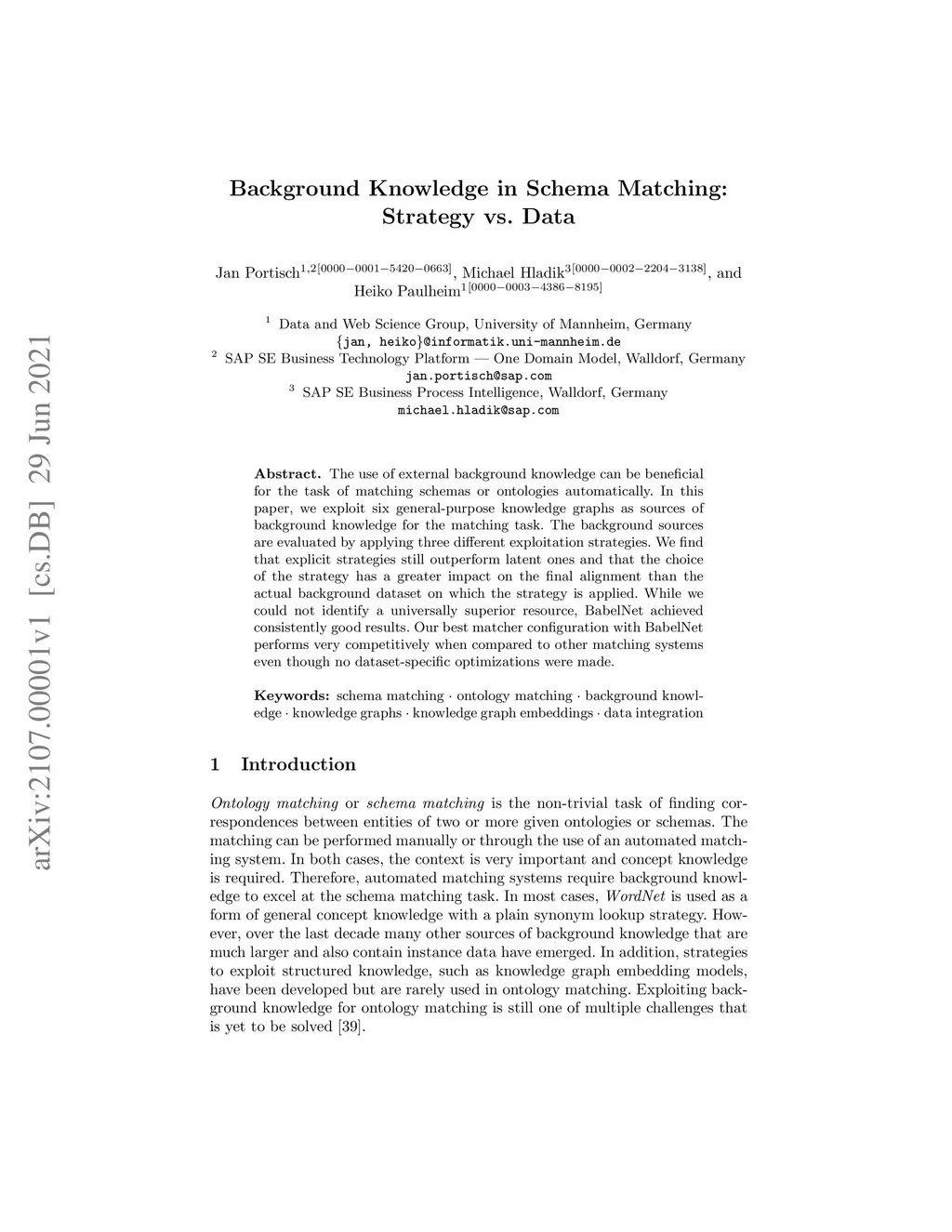 Background Knowledge in Schema Matching: Strategy vs. Data