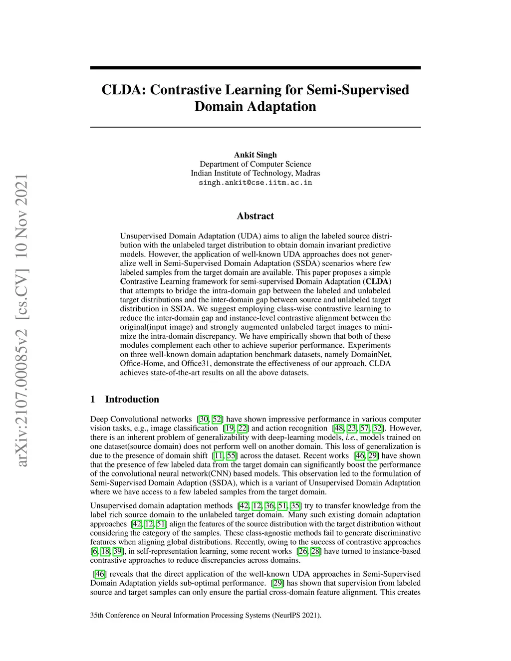 CLDA: Contrastive Learning for Semi-Supervised Domain Adaptation