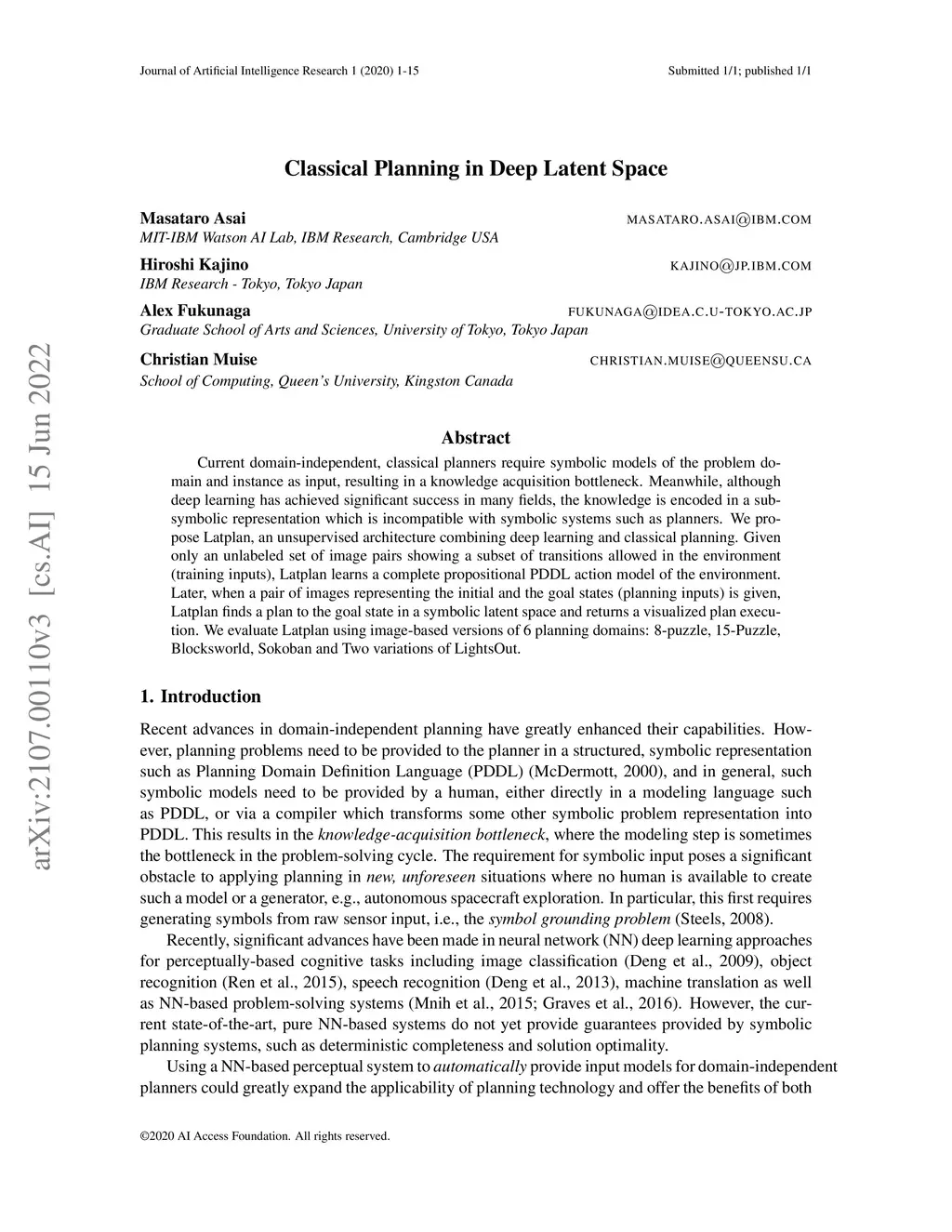 Classical Planning in Deep Latent Space