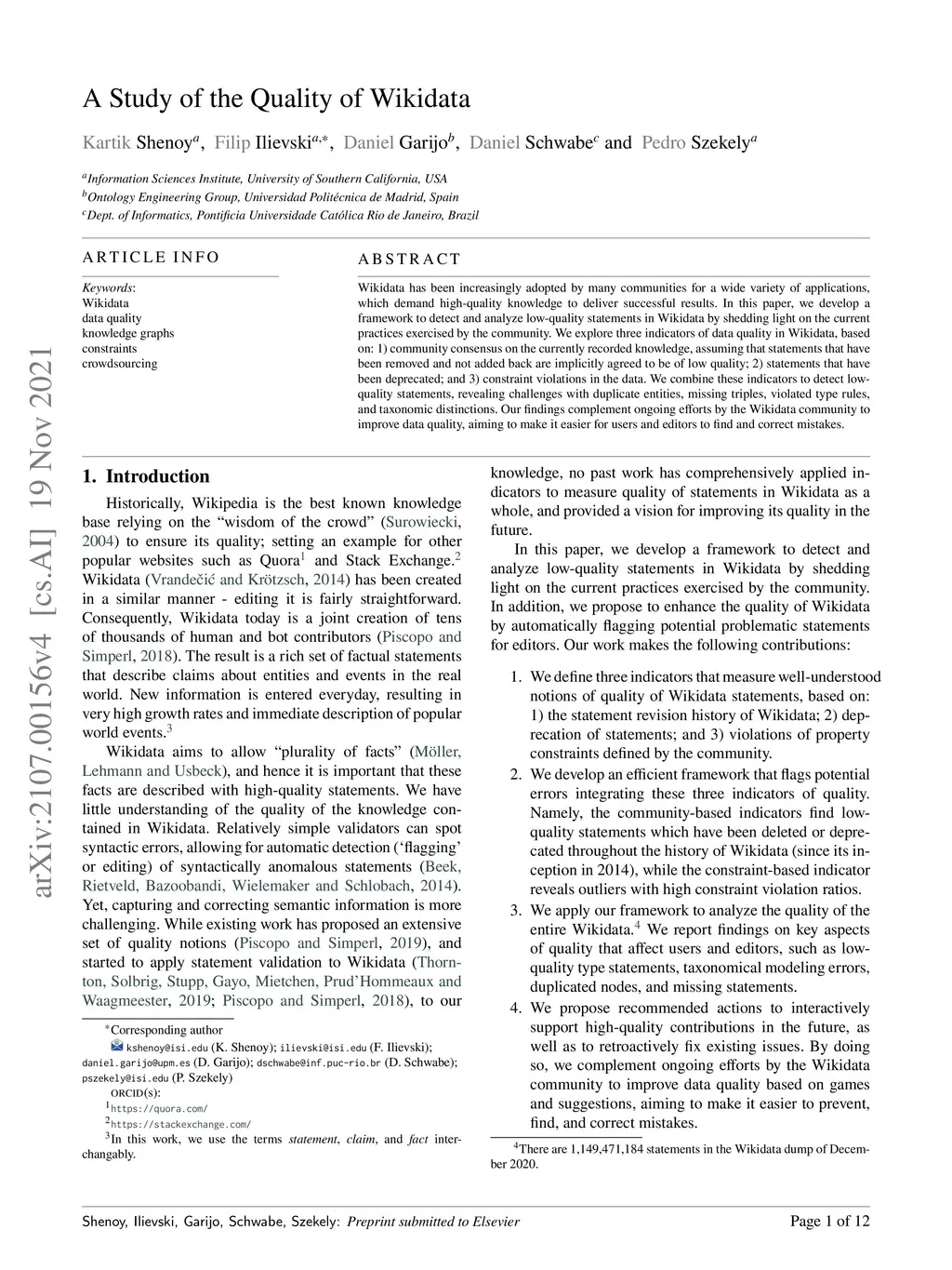 A Study of the Quality of Wikidata