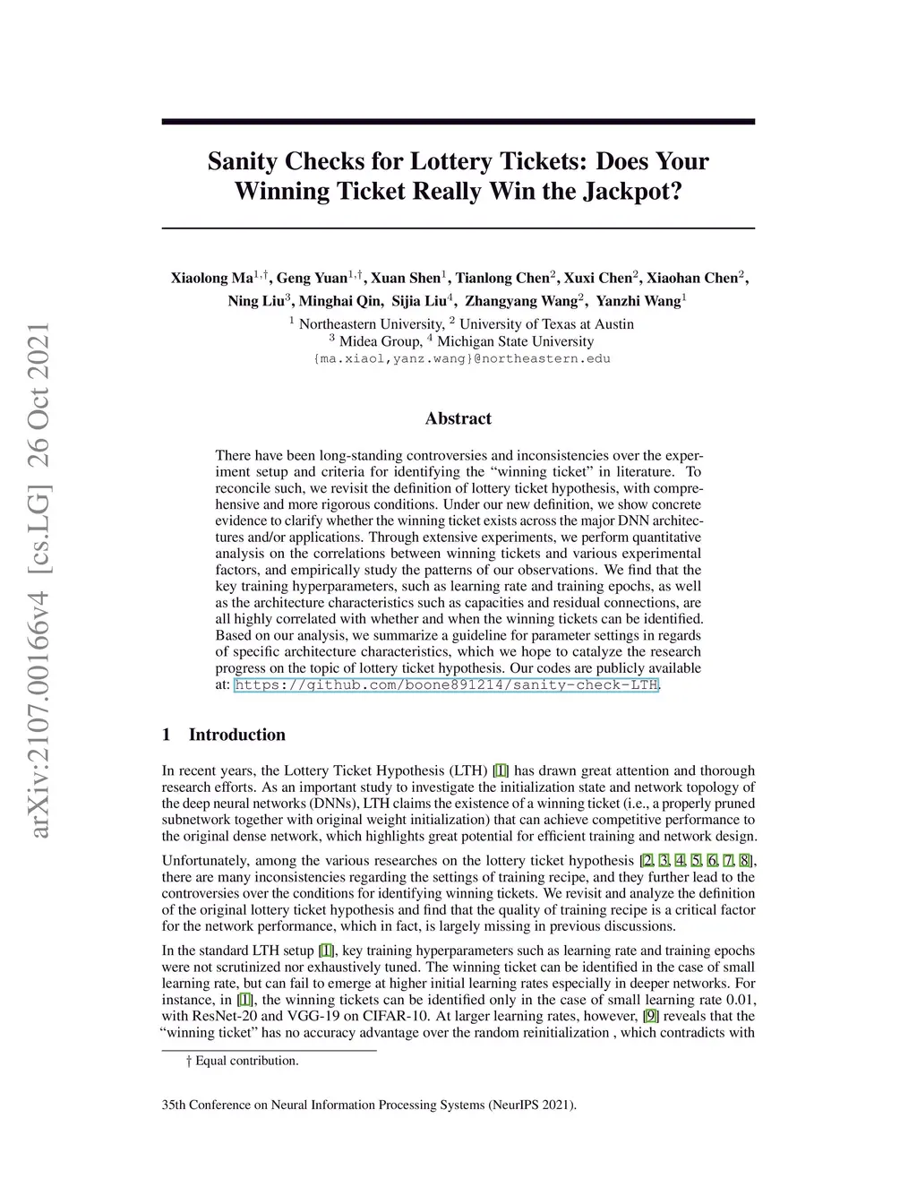 There have been long-standing controversies and inconsistencies over the experiment setup and criteria for identifying the "winning ticket" in literature. To reconcile such, we revisit the definition of lottery ticket hypothesis, with comprehensive and more rigorous conditions. Under our new definition, we show concrete evidence to clarify whether the winning ticket exists across the major DNN architectures and/or applications. Through extensive experiments, we perform quantitative analysis on the correlations between winning tickets and various experimental factors, and empirically study the patterns of our observations. We find that the key training hyperparameters, such as learning rate and training epochs, as well as the architecture characteristics such as capacities and residual connections, are all highly correlated with whether and when the winning tickets can be identified. Based on our analysis, we summarize a guideline for parameter settings in regards of specific architecture characteristics, which we hope to catalyze the research progress on the topic of lottery ticket hypothesis. Our codes are publicly available at: https://github.com/boone891214/sanity-check-LTH.