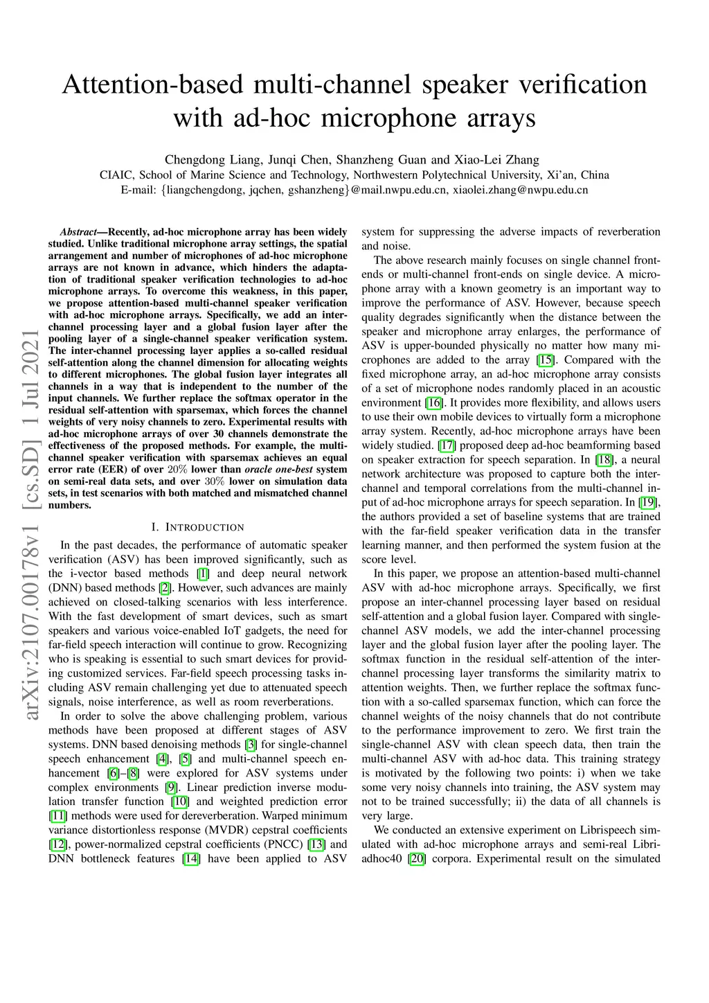 Attention-based multi-channel speaker verification with ad-hoc