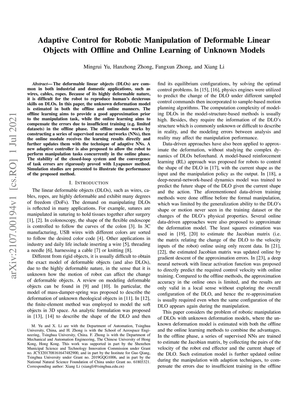 Adaptive Control for Robotic Manipulation of Deformable Linear Objects
