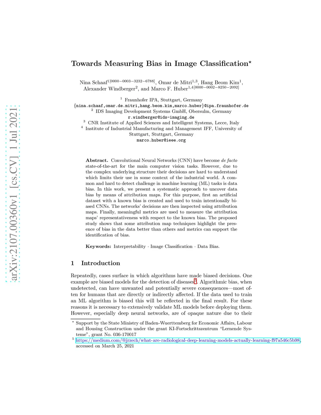 Convolutional Neural Networks (CNN) have become de fact state-of-the-art for the main computer vision tasks. However, due to the complex underlying structure their decisions are hard to understand which limits their use in some context of the industrial world. A common and hard to detect challenge in machine learning (ML) tasks is data bias. In this work, we present a systematic approach to uncover data bias by means of attribution maps. For this purpose, first an artificial dataset with a known bias is created and used to train intentionally biased CNNs. The networks' decisions are then inspected using attribution maps. Finally, meaningful metrics are used to measure the attribution maps' representativeness with respect to the known bias. The proposed study shows that some attribution map techniques highlight the presence of bias in the data better than others and metrics can support the identification of bias.