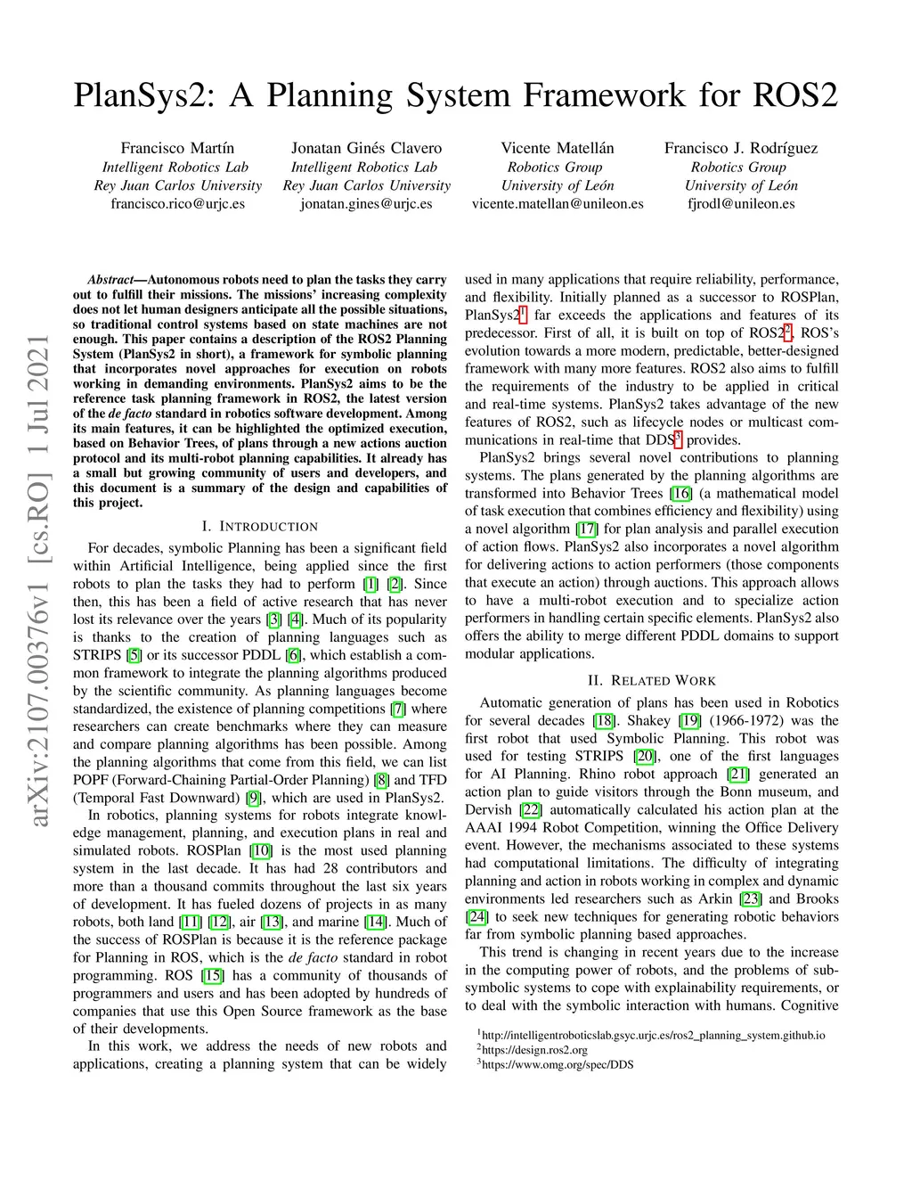 Autonomous robots need to plan the tasks they carry out to fulfill their missions. The missions' increasing complexity does not let human designers anticipate all the possible situations, so traditional control systems based on state machines are not enough. This paper contains a description of the ROS2 Planning System (PlanSys2 in short), a framework for symbolic planning that incorporates novel approaches for execution on robots working in demanding environments. PlanSys2 aims to be the reference task planning framework in ROS2, the latest version of the {\em de facto} standard in robotics software development. Among its main features, it can be highlighted the optimized execution, based on Behavior Trees, of plans through a new actions auction protocol and its multi-robot planning capabilities. It already has a small but growing community of users and developers, and this document is a summary of the design and capabilities of this project.