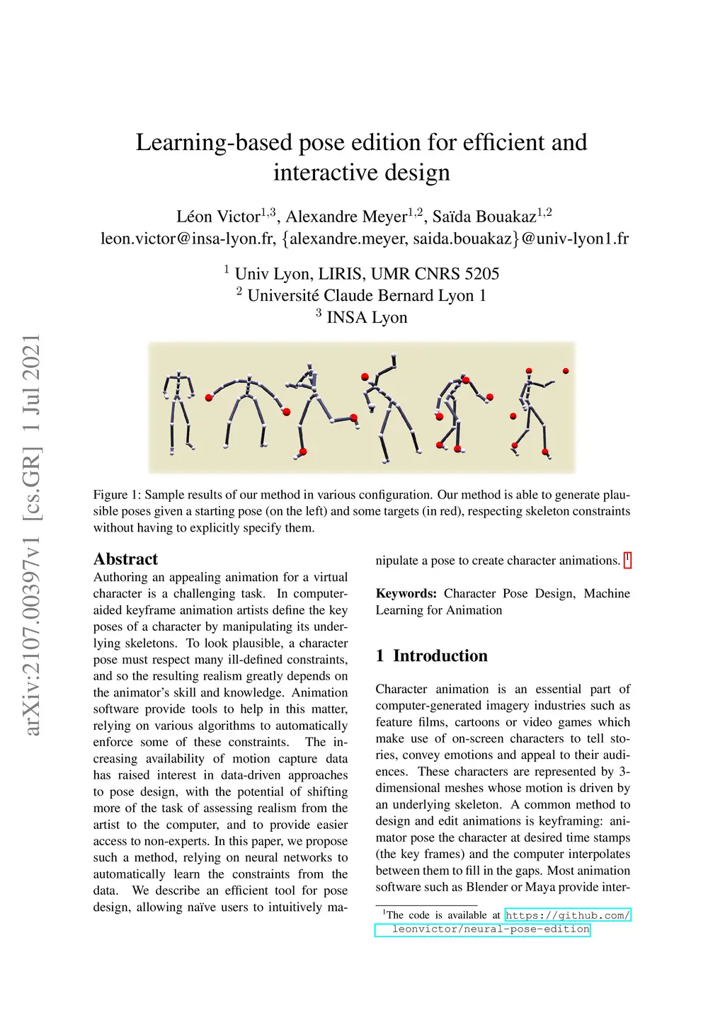 Authoring an appealing animation for a virtual character is a challenging task. In computer-aided keyframe animation artists define the key poses of a character by manipulating its underlying skeletons. To look plausible, a character pose must respect many ill-defined constraints, and so the resulting realism greatly depends on the animator's skill and knowledge. Animation software provide tools to help in this matter, relying on various algorithms to automatically enforce some of these constraints. The increasing availability of motion capture data has raised interest in data-driven approaches to pose design, with the potential of shifting more of the task of assessing realism from the artist to the computer, and to provide easier access to nonexperts. In this article, we propose such a method, relying on neural networks to automatically learn the constraints from the data. We describe an efficient tool for pose design, allowing na{\"i}ve users to intuitively manipulate a pose to create character animations.