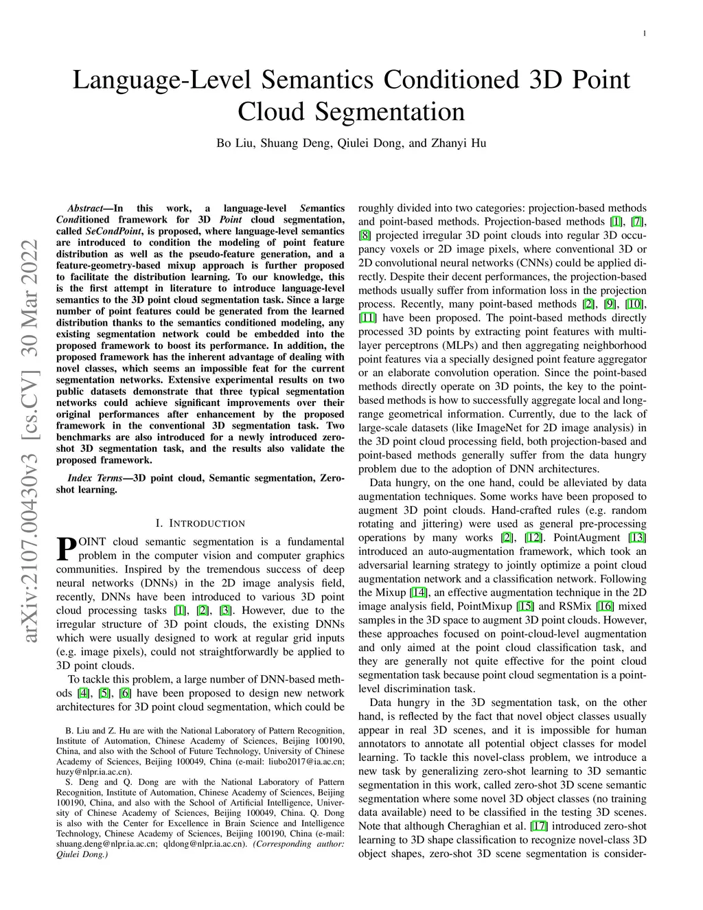 Language-Level Semantics Conditioned 3D Point Cloud Segmentation