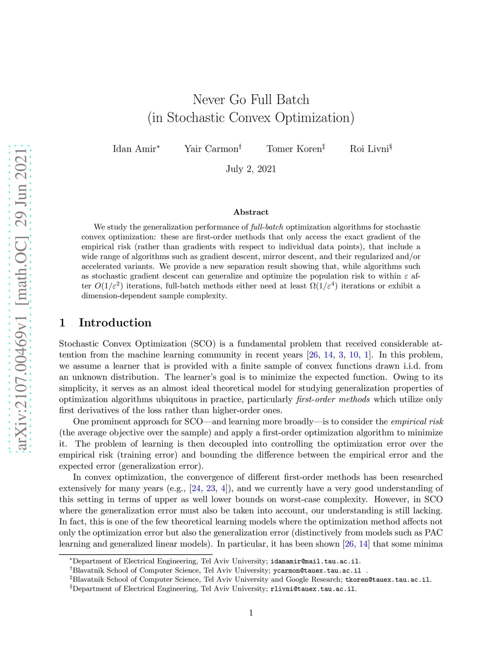 Never Go Full Batch (in Stochastic Convex Optimization)