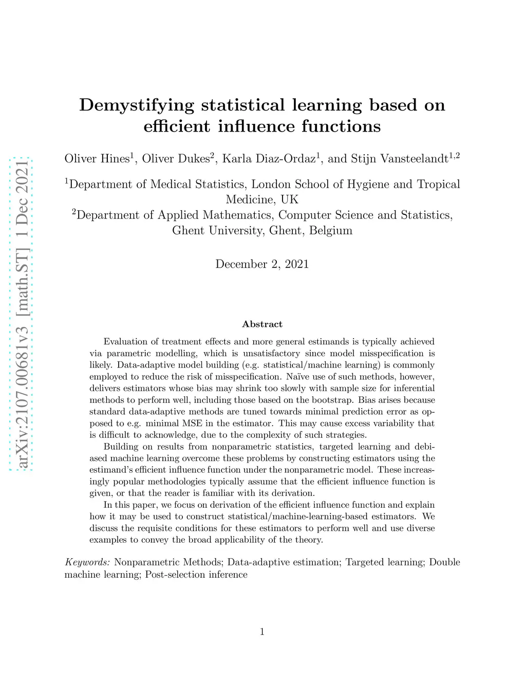 Evaluation of treatment effects and more general estimands is typically achieved via parametric modelling, which is unsatisfactory since model misspecification is likely. Data-adaptive model building (e.g. statistical/machine learning) is commonly employed to reduce the risk of misspecification. Naive use of such methods, however, delivers estimators whose bias may shrink too slowly with sample size for inferential methods to perform well, including those based on the bootstrap. Bias arises because standard data-adaptive methods are tuned towards minimal prediction error as opposed to e.g. minimal MSE in the estimator. This may cause excess variability that is difficult to acknowledge, due to the complexity of such strategies. Building on results from non-parametric statistics, targeted learning and debiased machine learning overcome these problems by constructing estimators using the estimand's efficient influence function under the non-parametric model. These increasingly popular methodologies typically assume that the efficient influence function is given, or that the reader is familiar with its derivation. In this paper, we focus on derivation of the efficient influence function and explain how it may be used to construct statistical/machine-learning-based estimators. We discuss the requisite conditions for these estimators to perform well and use diverse examples to convey the broad applicability of the theory.