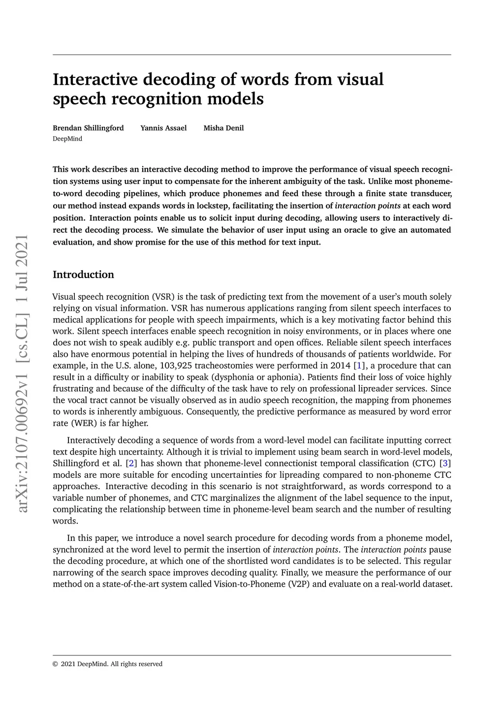 Interactive decoding of words from visual speech recognition models
