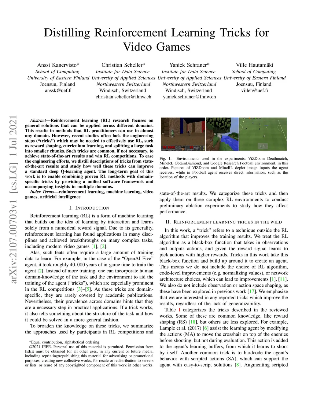 Reinforcement learning (RL) research focuses on general solutions that can be applied across different domains. This results in methods that RL practitioners can use in almost any domain. However, recent studies often lack the engineering steps ("tricks") which may be needed to effectively use RL, such as reward shaping, curriculum learning, and splitting a large task into smaller chunks. Such tricks are common, if not necessary, to achieve state-of-the-art results and win RL competitions. To ease the engineering efforts, we distill descriptions of tricks from state-of-the-art results and study how well these tricks can improve a standard deep Q-learning agent. The long-term goal of this work is to enable combining proven RL methods with domain-specific tricks by providing a unified software framework and accompanying insights in multiple domains.