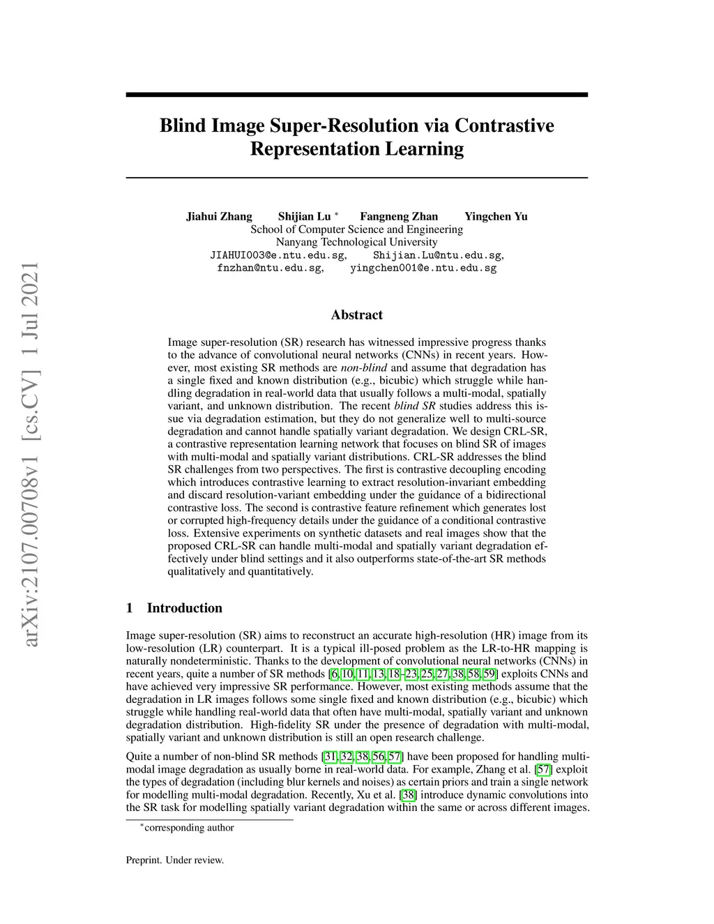 Blind Image Super-Resolution via Contrastive Representation Learning