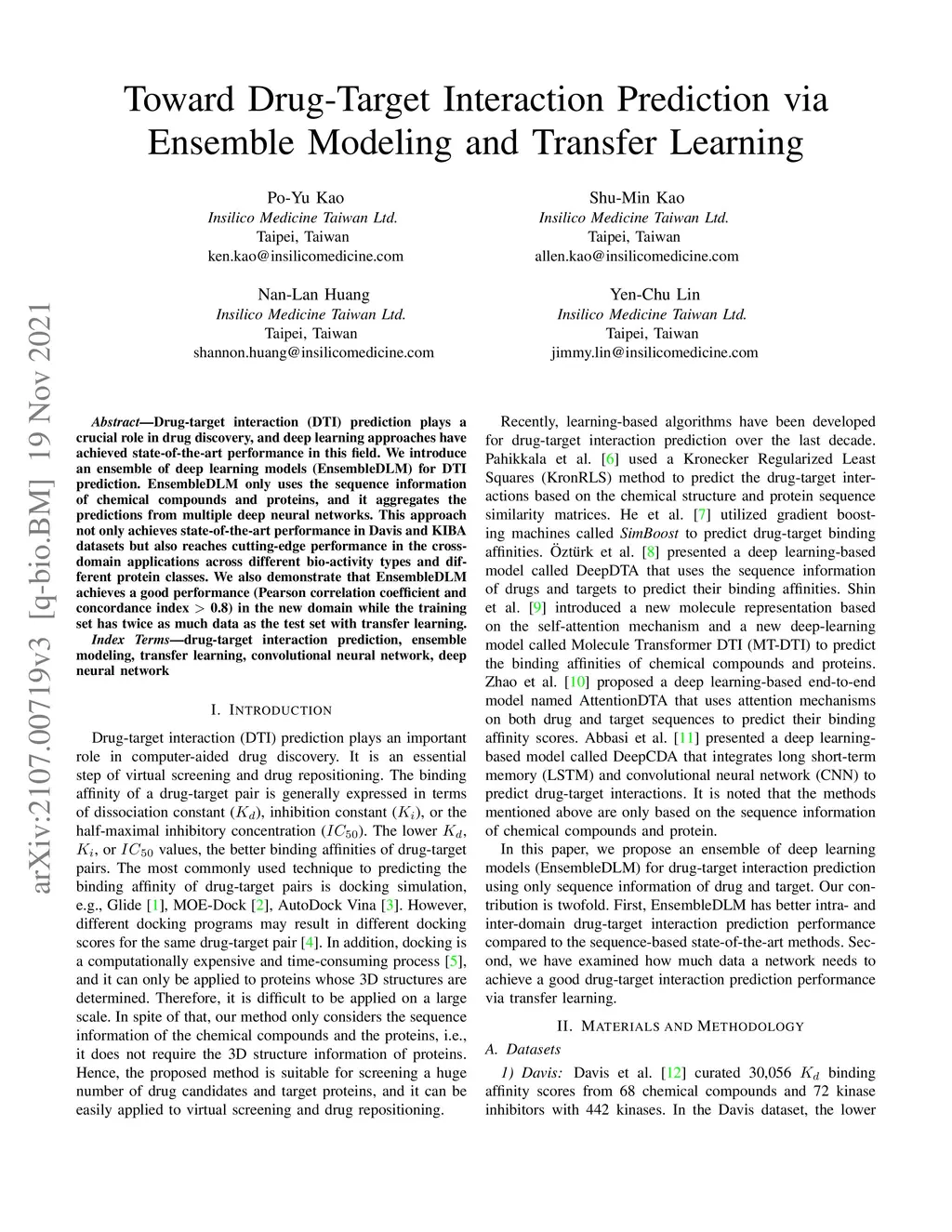 Toward Drug-Target Interaction Prediction via Ensemble Modeling and