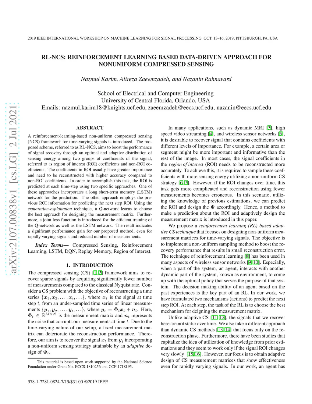 RL-NCS: Reinforcement learning based data-driven approach for nonuniform
