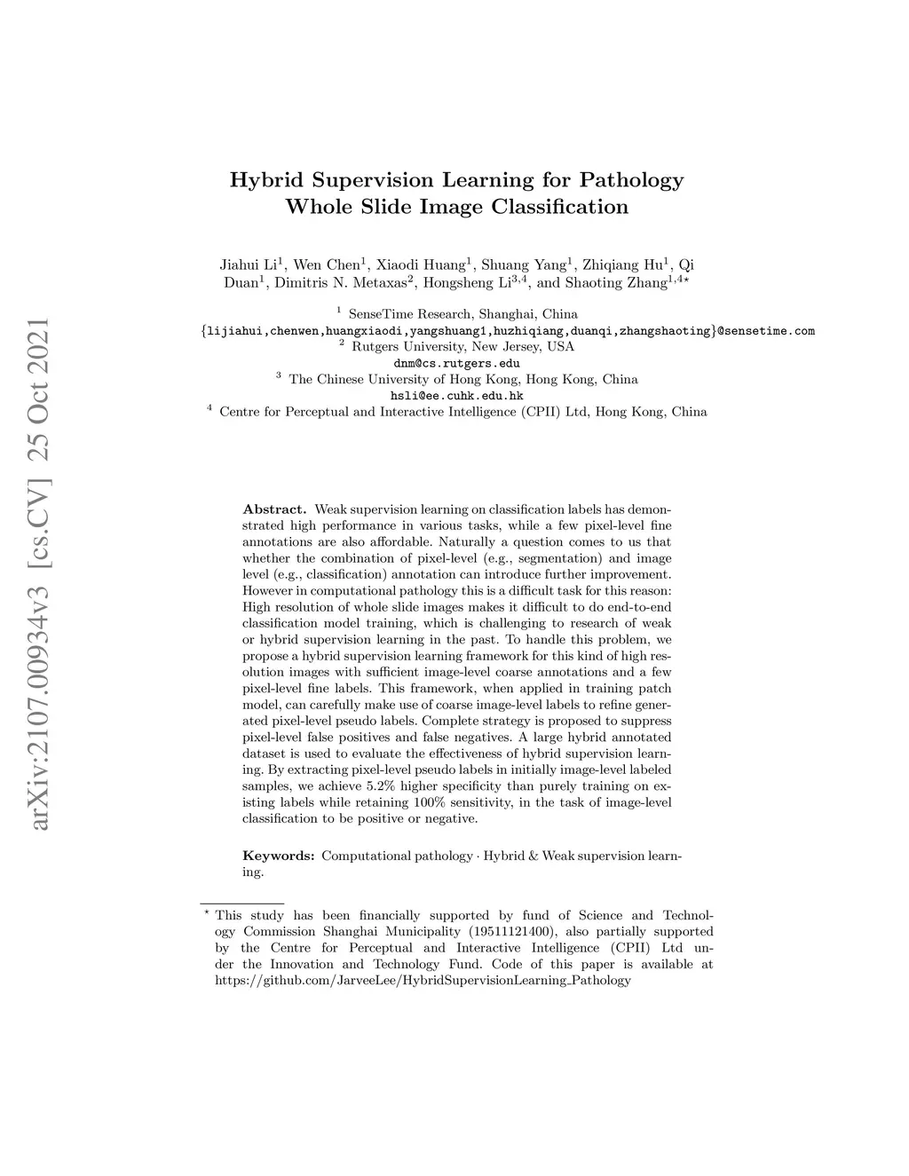 Hybrid Supervision Learning for Pathology Whole Slide Image