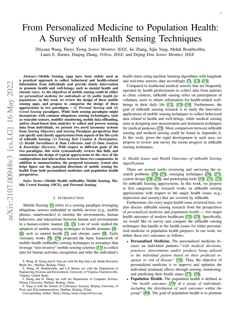 From Personalized Medicine to Population Health: A Survey of mHealth