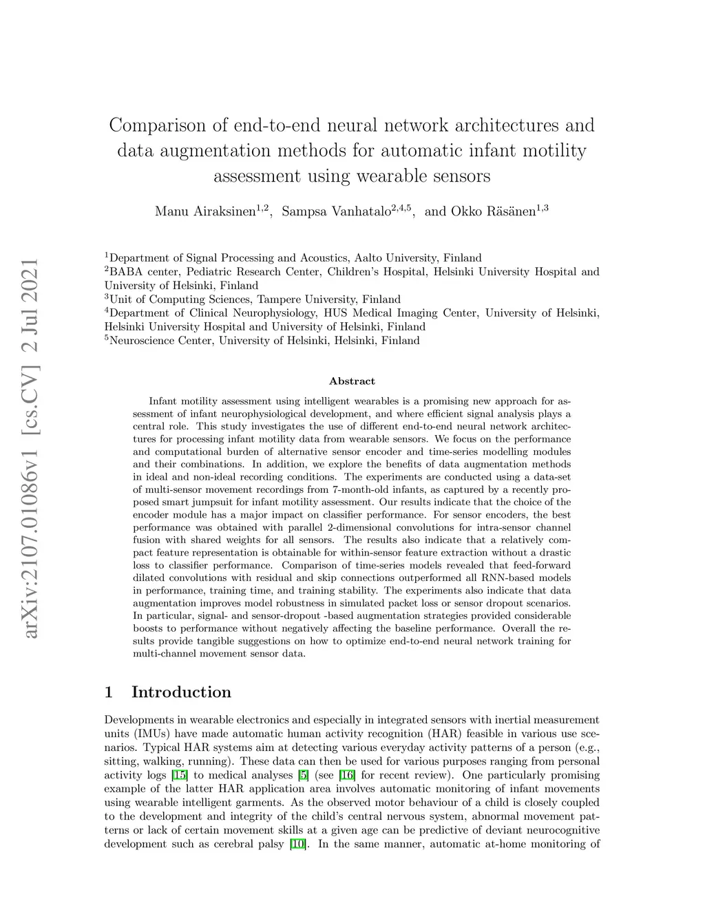 augmentation methods for automatic infant motility assessment using wearable