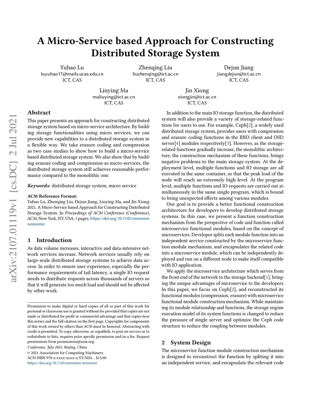 This paper presents an approach for constructing distributed storage system based on micro-service architecture. By building storage functionalities using micro services, we can provide new capabilities to a distributed storage system in a flexible way. We take erasure coding and compression as two case studies to show how to build a micro-service based distributed storage system. We also show that by building erasure coding and compression as micro-services, the distributed storage system still achieves reasonable performance compared to the monolithic one.