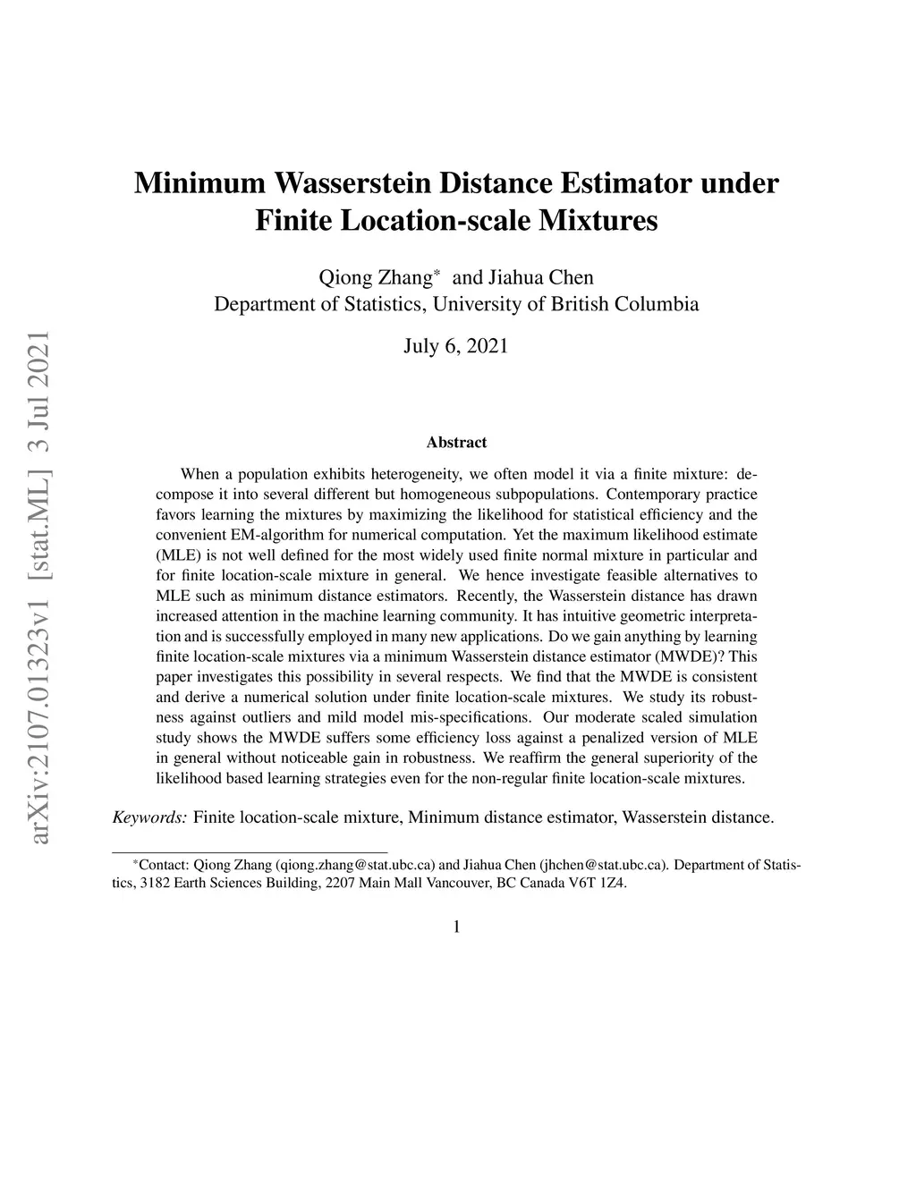 When a population exhibits heterogeneity, we often model it via a finite mixture: decompose it into several different but homogeneous subpopulations. Contemporary practice favors learning the mixtures by maximizing the likelihood for statistical efficiency and the convenient EM-algorithm for numerical computation. Yet the maximum likelihood estimate (MLE) is not well defined for the most widely used finite normal mixture in particular and for finite location-scale mixture in general. We hence investigate feasible alternatives to MLE such as minimum distance estimators. Recently, the Wasserstein distance has drawn increased attention in the machine learning community. It has intuitive geometric interpretation and is successfully employed in many new applications. Do we gain anything by learning finite location-scale mixtures via a minimum Wasserstein distance estimator (MWDE)? This paper investigates this possibility in several respects. We find that the MWDE is consistent and derive a numerical solution under finite location-scale mixtures. We study its robustness against outliers and mild model mis-specifications. Our moderate scaled simulation study shows the MWDE suffers some efficiency loss against a penalized version of MLE in general without noticeable gain in robustness. We reaffirm the general superiority of the likelihood based learning strategies even for the non-regular finite location-scale mixtures.
