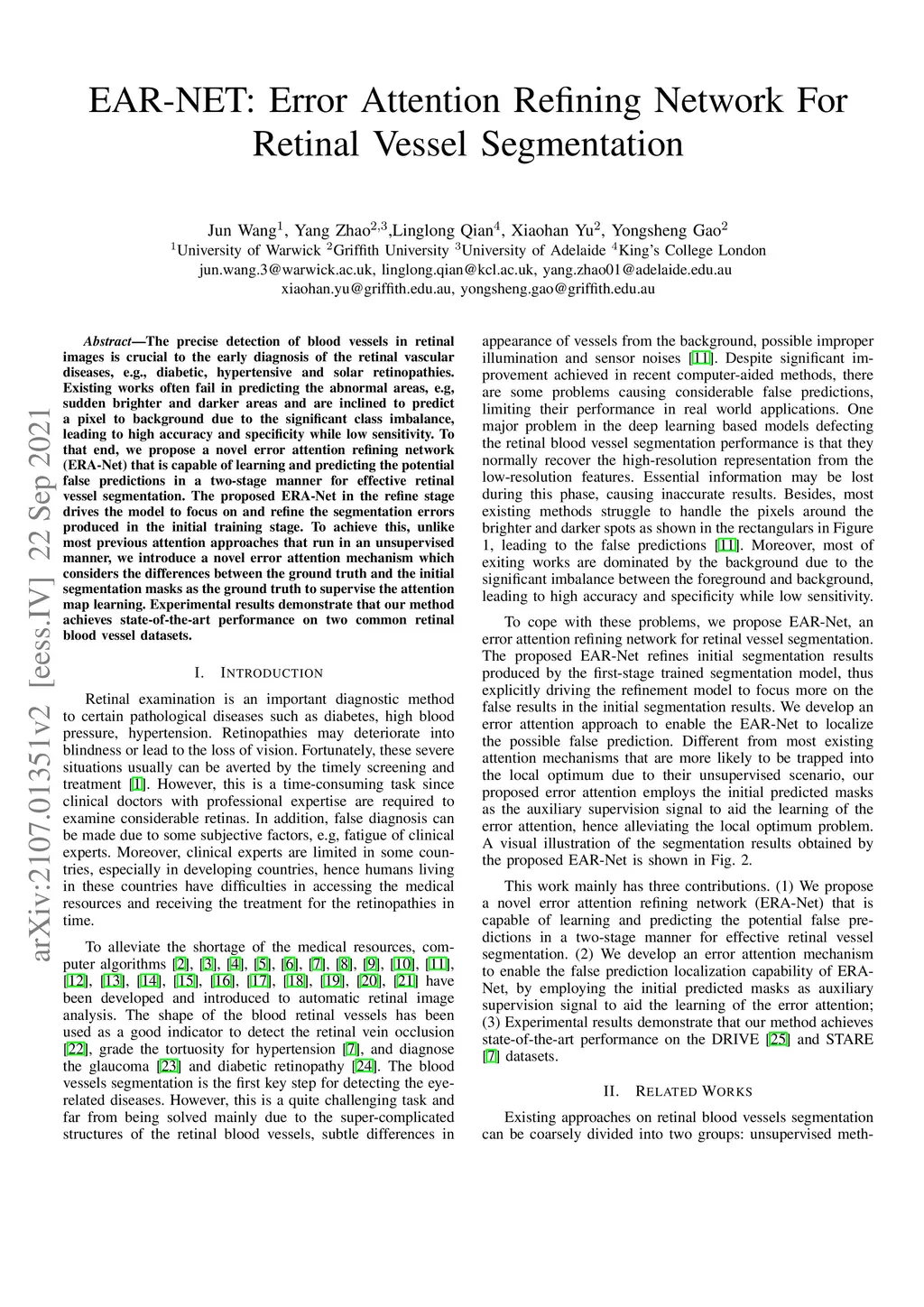 EAR-NET: Error Attention Refining Network For Retinal Vessel