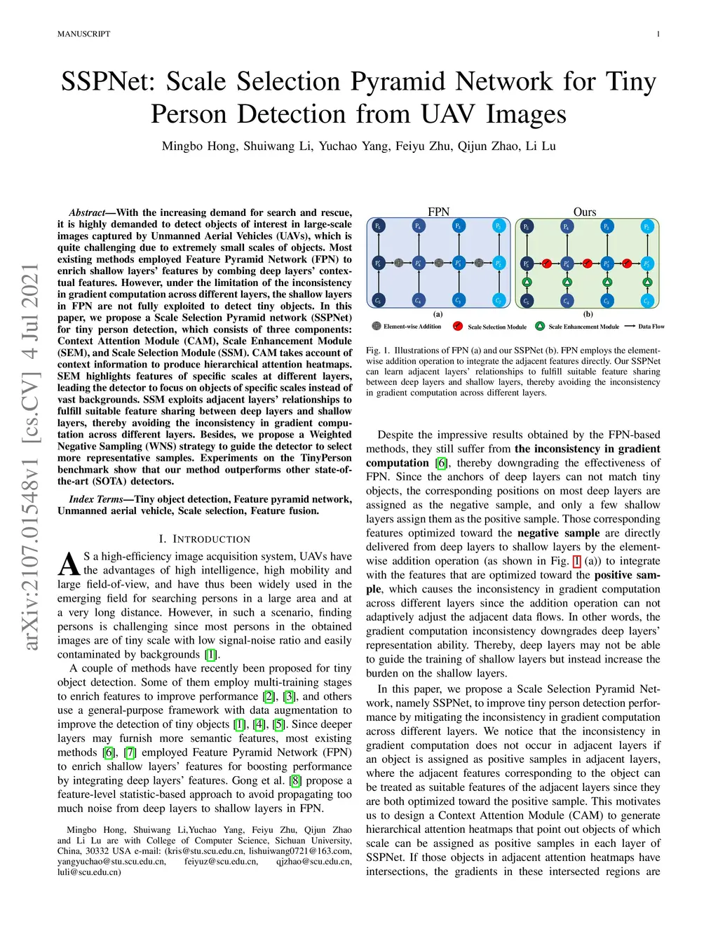 SSPNet: Scale Selection Pyramid Network for Tiny Person Detection from