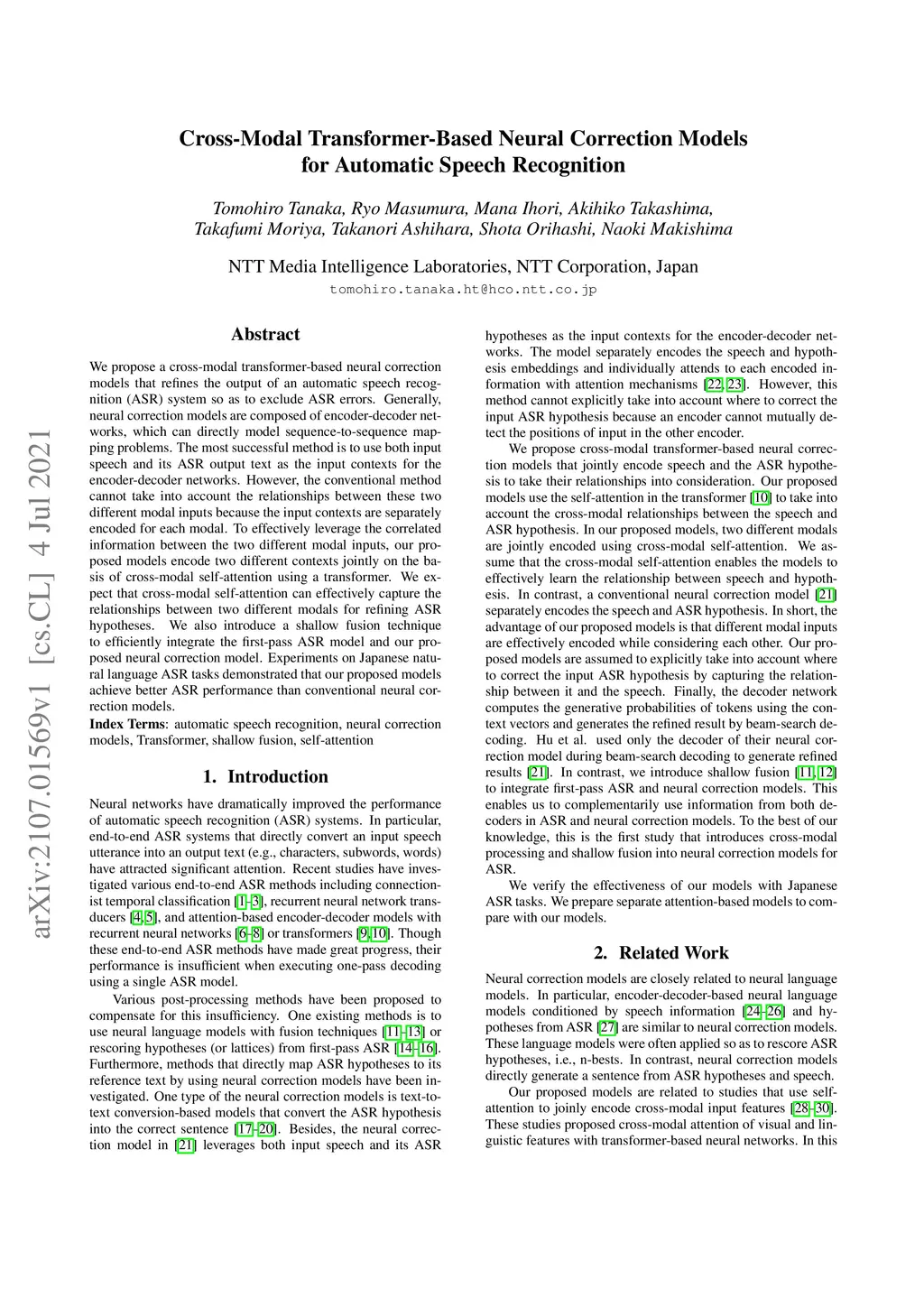 Cross-Modal Transformer-Based Neural Correction Models for Automatic