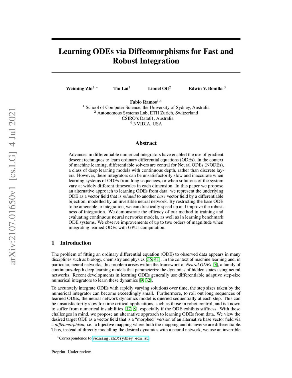 Learning ODEs via Diffeomorphisms for Fast and Robust Integration