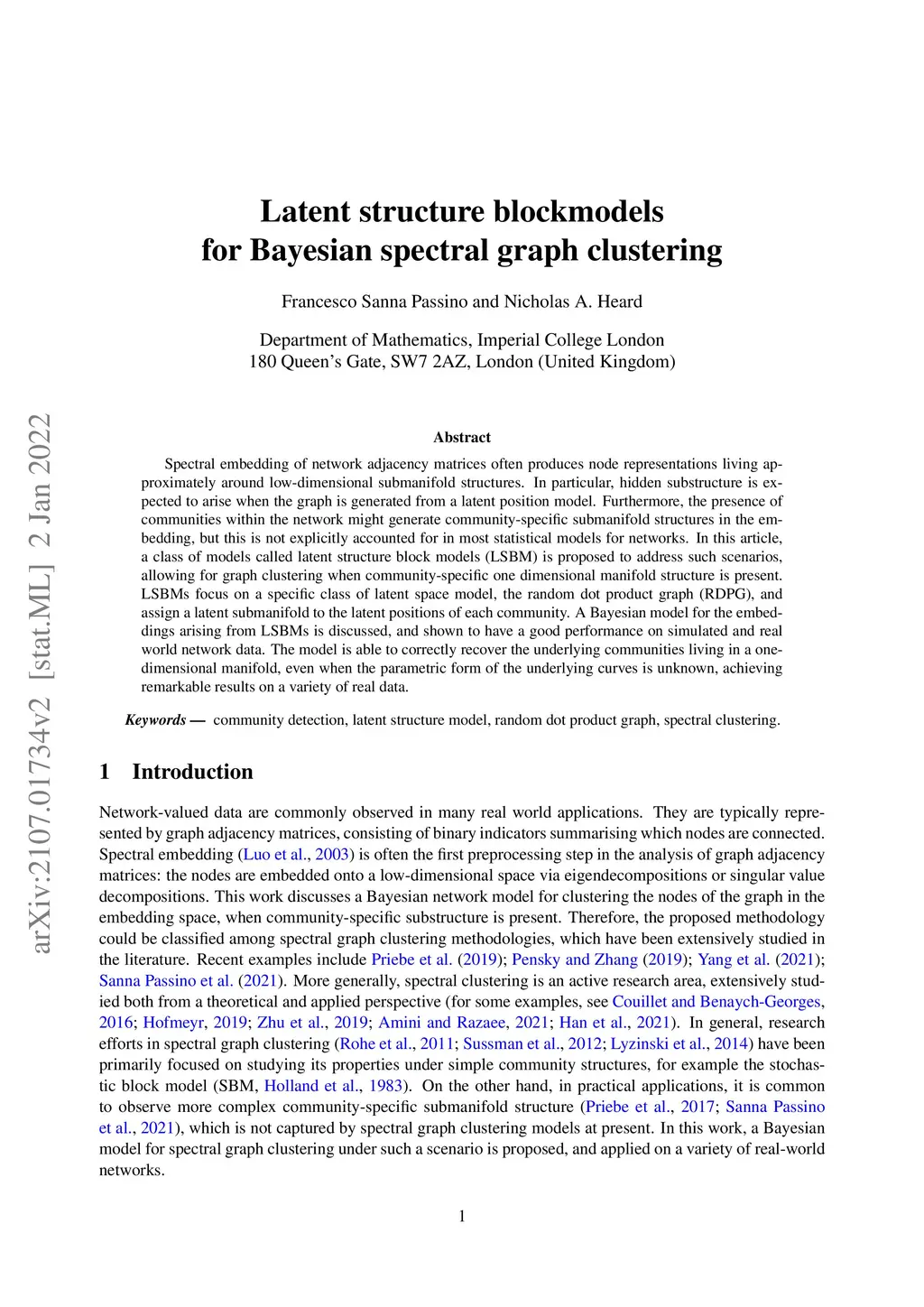 Latent structure blockmodels for Bayesian spectral graph clustering