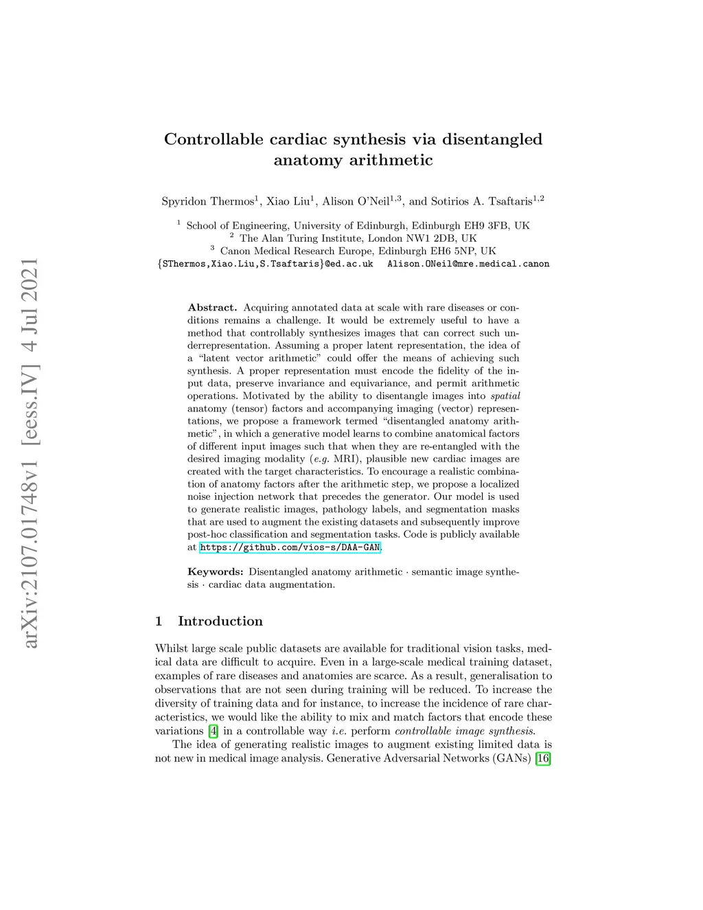 Controllable cardiac synthesis via disentangled anatomy arithmetic