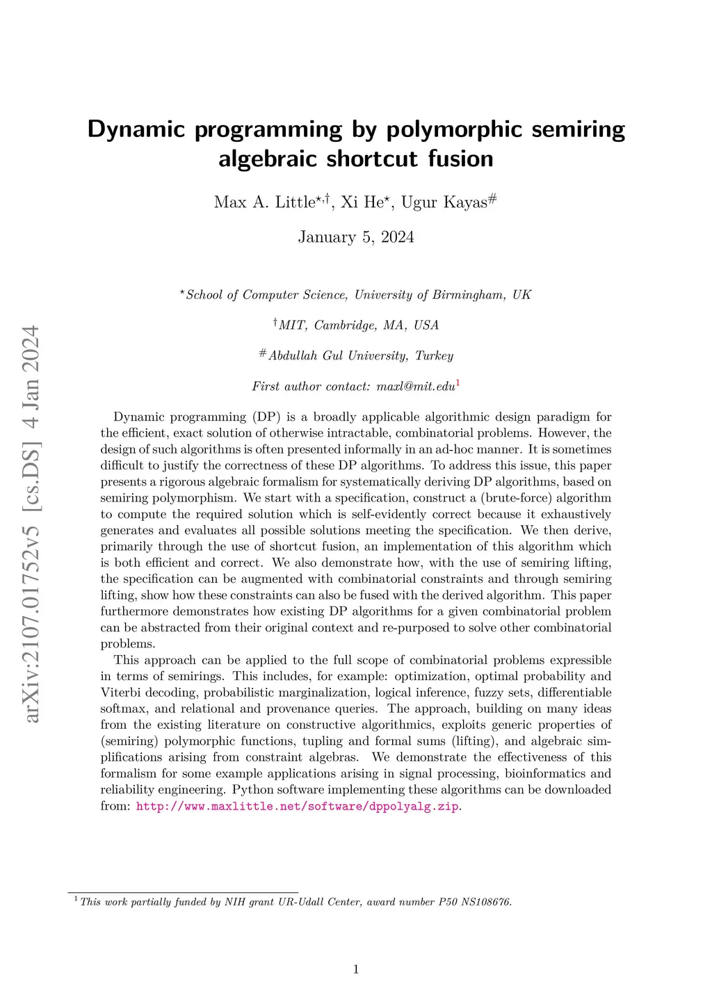 Dynamic programming by polymorphic semiring algebraic shortcut fusion