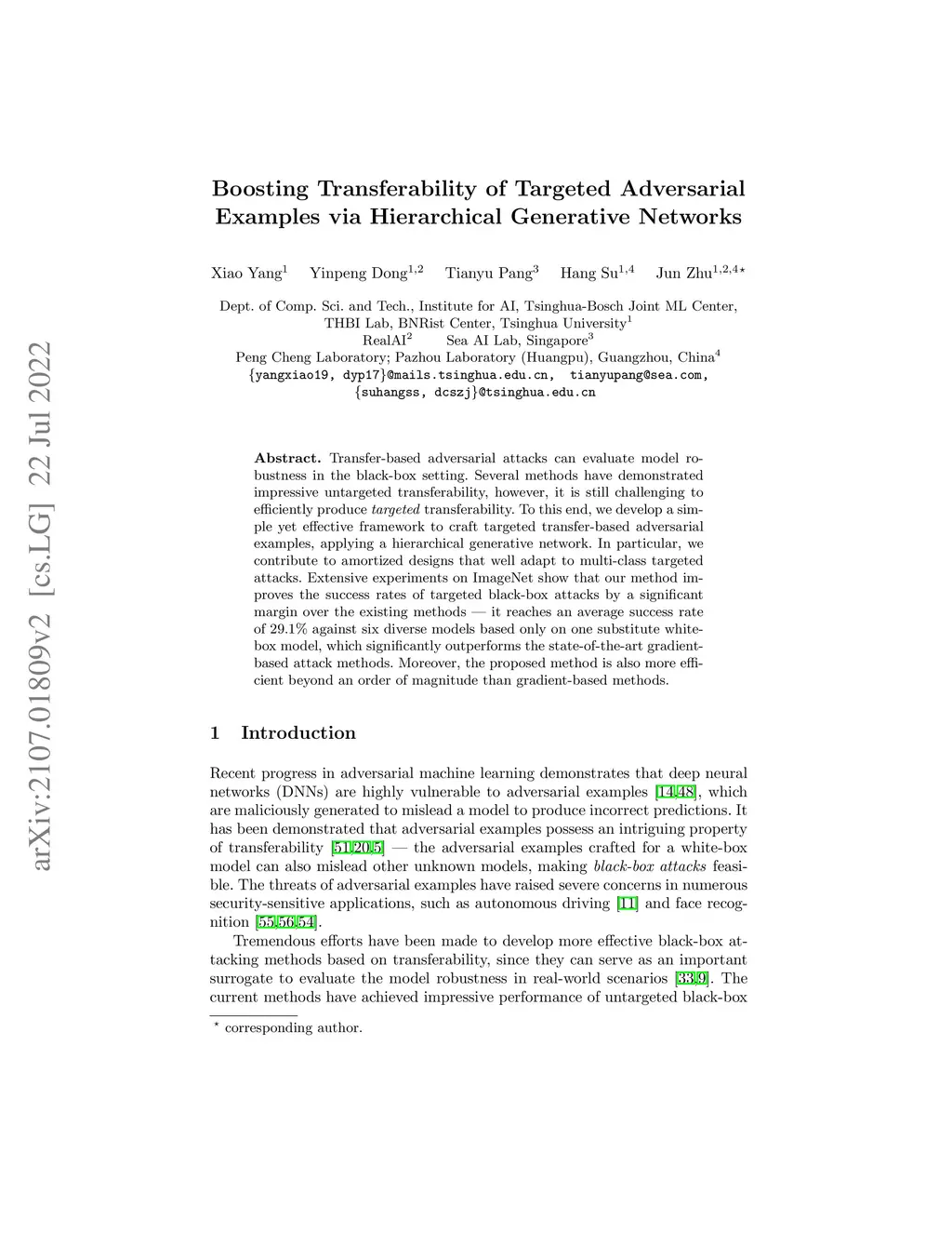 Transfer-based adversarial attacks can evaluate model robustness in the black-box setting. Several methods have demonstrated impressive untargeted transferability, however, it is still challenging to efficiently produce targeted transferability. To this end, we develop a simple yet effective framework to craft targeted transfer-based adversarial examples, applying a hierarchical generative network. In particular, we contribute to amortized designs that well adapt to multi-class targeted attacks. Extensive experiments on ImageNet show that our method improves the success rates of targeted black-box attacks by a significant margin over the existing methods -- it reaches an average success rate of 29.1\% against six diverse models based only on one substitute white-box model, which significantly outperforms the state-of-the-art gradient-based attack methods. Moreover, the proposed method is also more efficient beyond an order of magnitude than gradient-based methods.