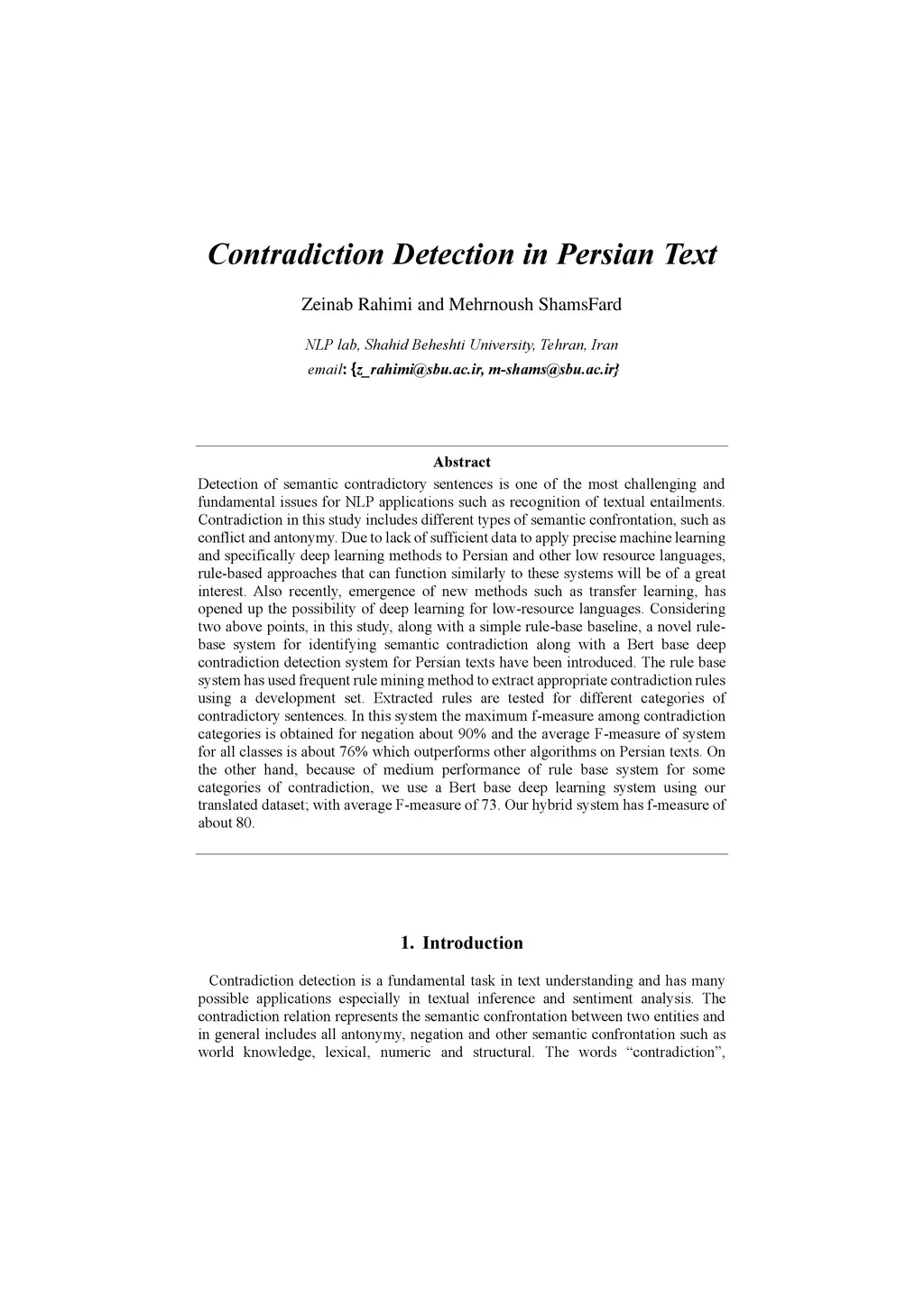 Contradiction Detection in Persian Text